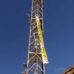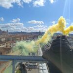 Una nuova protesta del collettivo di fabbrica della ex Gkn di Campi Bisenzio. A Firenze due dipendenti stanno manifestando sulla torre faro vicina al binario 17 della stazione di Santa Maria Novella a Firenze.