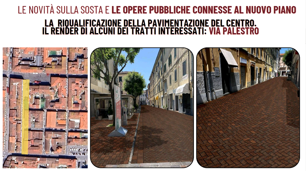Sempre nel centro è prevista la regolamentazione degli accessi con telecamere. Nell'area è prevista la riqualificazione, con la pavimentazione di vie limitrofe e adiacenti a Corso Matteotti. Alcune strade interessate saranno via Palestro, Valtriani, Magenta, Sotto i Portici e Marconcini, con un aspetto che sarà conforme agli interventi già eseguiti in passato, quindi con lastricato in pietra.