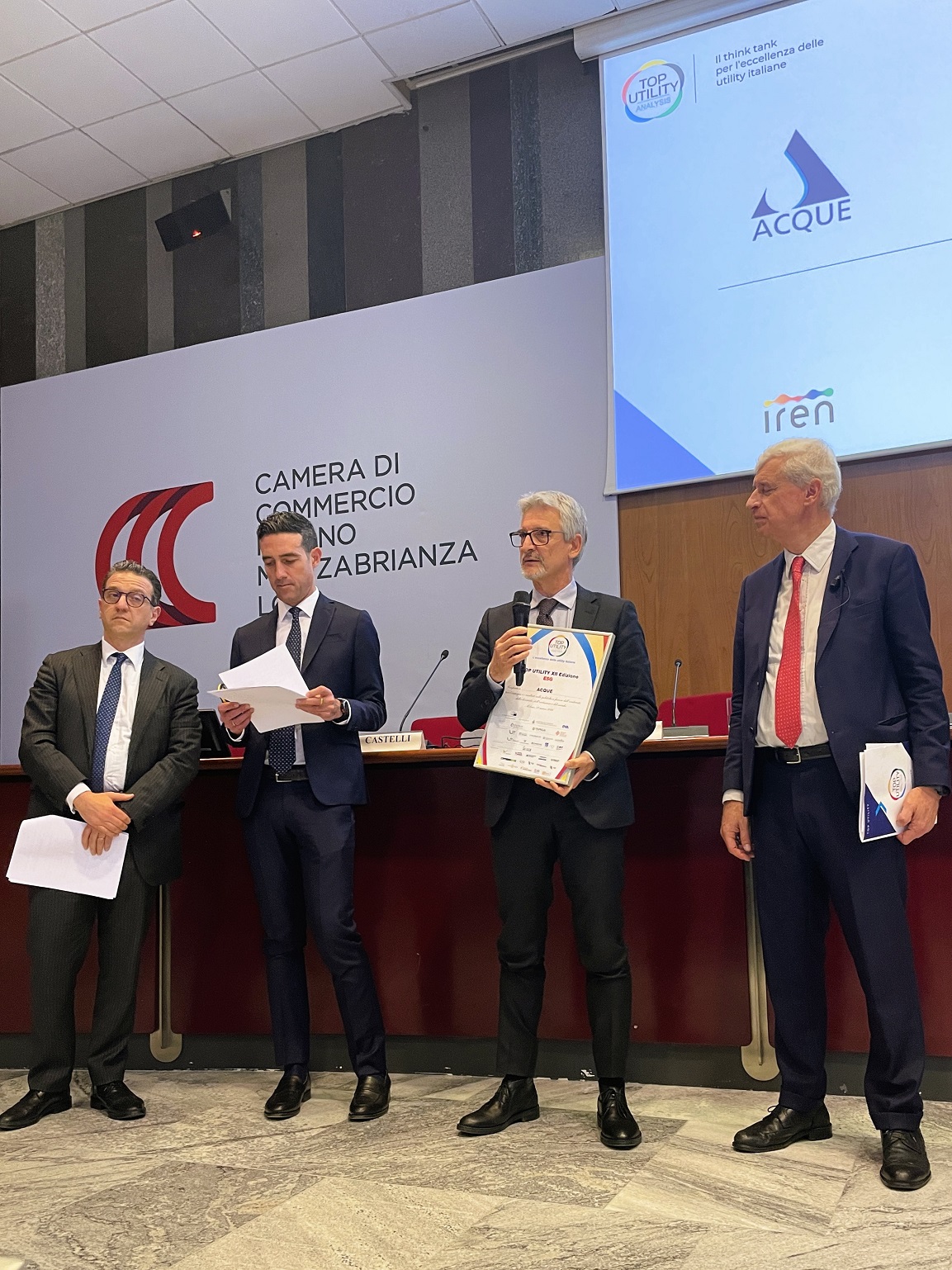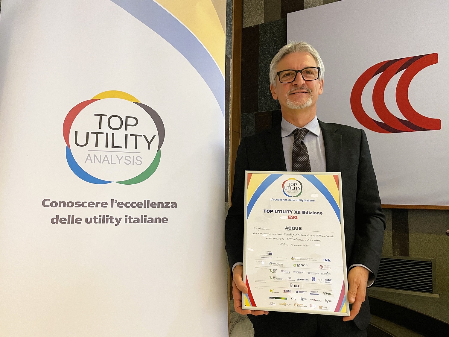 “Per le basse emissioni, la gestione efficiente dell’acqua in termini di perdite, la depurazione e la potabilizzazione, l’attenzione alla diversity nelle figure dirigenziali”. Queste le motivazioni con cui Acque, gestore idrico del Basso Valdarno, si è aggiudicata il premio per la categoria “ESG” (acronimo per “Ambiente, Sociale e Governance”) a Top Utility, la manifestazione giunta alla dodicesima edizione che ogni anno, sotto il patrocinio dell’Unione Europea e del Ministero dell’Ambiente, analizza le performance delle principali cento società italiane nel campo dei servizi di pubblica utilità. Il riconoscimento è stato consegnato all’amministratore delegato Fabio Trolese nel corso dell’evento che si è tenuto oggi, mercoledì 13 marzo, presso la Camera di Commercio di Milano, e che ha visto tra gli altri anche la partecipazione in video-collegamento del ministro dell’Ambiente Gilberto Pichetto Fratin.