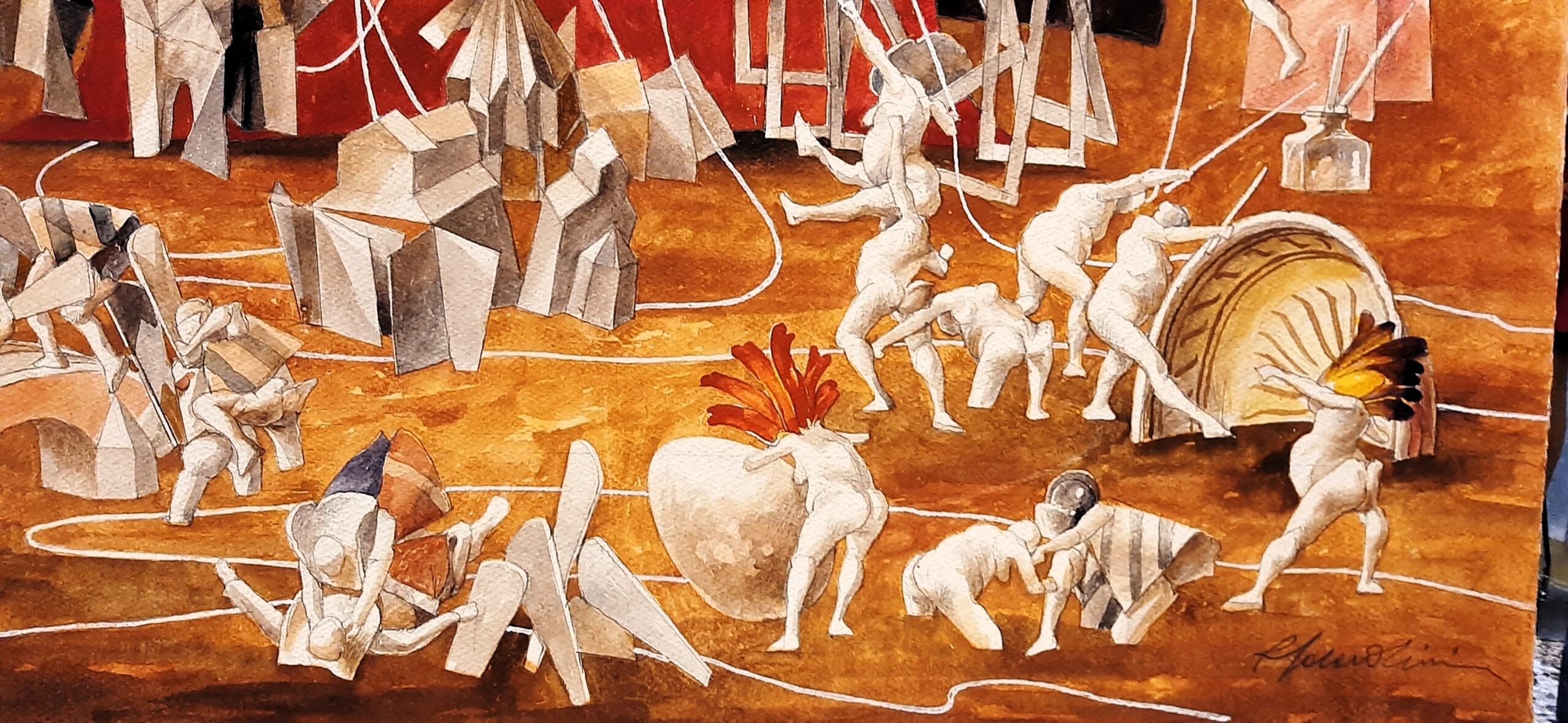 «Questo dipinto di Renzo Galardini è un atto d’amore per la città - commenta Alessandro Tosi -. Nel corso della sua carriera ha già fatto molto, in particolare per il Gioco del Ponte ma anche per i quartieri e le feste cittadine. Galardini affonda la sua cultura nella storia pisana, nelle sue testimonianze architettoniche, pittoriche e nel suo ricco patrimonio intangibile. Enzo Carli già quarant’anni fa indicava Galardini come l’artista pisano più grande, colui che avrebbe raccolto l’eredità di Viviani e l’avrebbe portata avanti con successo. La sua è una delle voci più rilevanti del panorama artistico pisano».