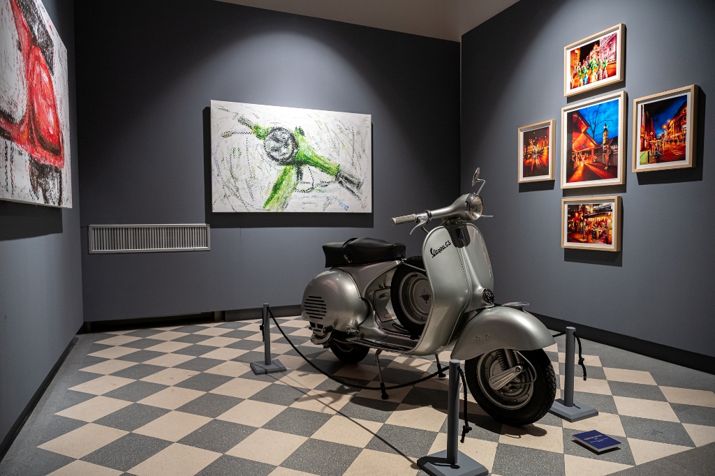 Sono passate infatti cento estati da quando la Piaggio, nata 140 anni fa, è “atterrata” a Pontedera e sono trascorse 78 primavere dal momento in cui è uscita la prima Vespa dallo stabilimento cittadino per colorare il mondo. Ecco, proprio il colore, l'evoluzione, il contemporaneo, l'innovazione, la vitalità, sono le cifre di questa mostra, con la regia di Alberto Bartalini, patrocinata dalla Regione Toscana e prodotta dal Comune di Pontedera e dalla Fondazione per Cultura Pontedera, con il supporto di numerose realtà del territorio.