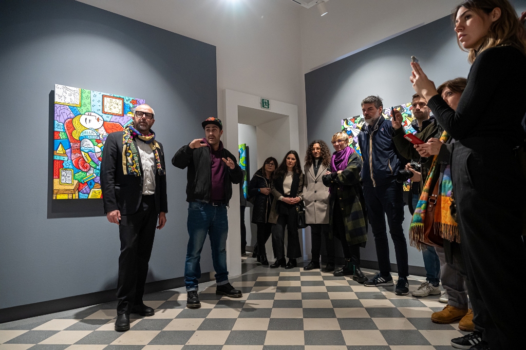 Un percorso già avviato che, di fatto, proprio con questa mostra, inaugurata stamani, comincia a scandire un preciso countdown. Le sale del Palp accoglieranno le opere di Paolo Amico, David Pompili e Skim e con Nico Lopez Bruchi, che, in avvicinamento all'evento, lavorerà e creerà in esterno in luoghi diffusi della città. Una strategia artistica sul territorio che avverrà, nelle prossime settimane, anche con gli altri artisti, per un ingegno messo a servizio di un appuntamento memorabile, una invasione pop che percorrerà il Palp e la città, un virtuosismo che festeggerà un mito.