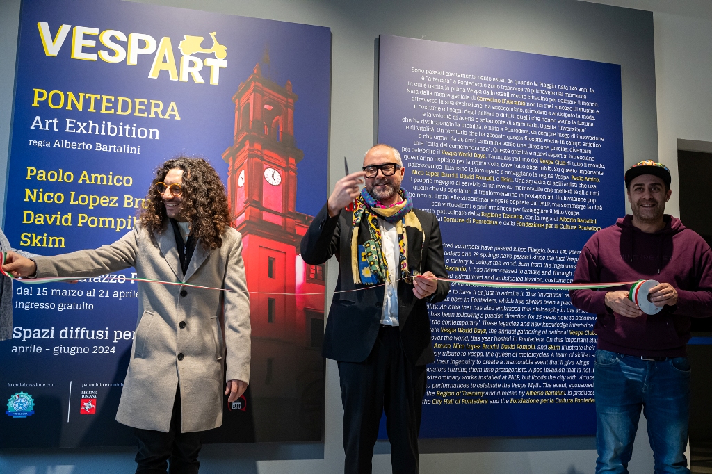 E' una mostra che coniuga nel suo dna la Vespa ma soprattutto le opere di artisti affermati e geniali. VespArt, dal 15 marzo al 21 aprile al Palp e in spazi diffusi per la città, accoglierà pezzi di collezioni di grande pregio e sarà un omaggio alla regina Vespa. Simbolo di Pontedera e assoluta protagonista di un palcoscenico mondiale, quello dei Vespa World Days, che la città ospiterà dal 18 al 21 aprile, raccogliendo sul territorio migliaia di presenze, in quella che sarà una sorta di "Olimpiade".