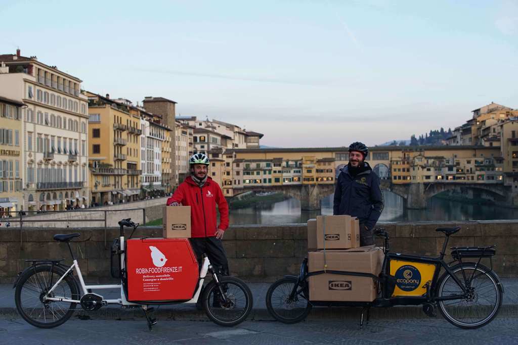 Ecopony, il primo corriere in bicicletta di Firenze e Robin Food, cooperativa nata da un’idea di un gruppo di ciclofattorini fiorentini, operano in tutta la città fornendo un servizio efficiente, ecologico e nella tutela dei propri collaboratori, cui viene garantito un contratto stabile, percorsi di formazione e l’equipaggiamento necessario all’attività.