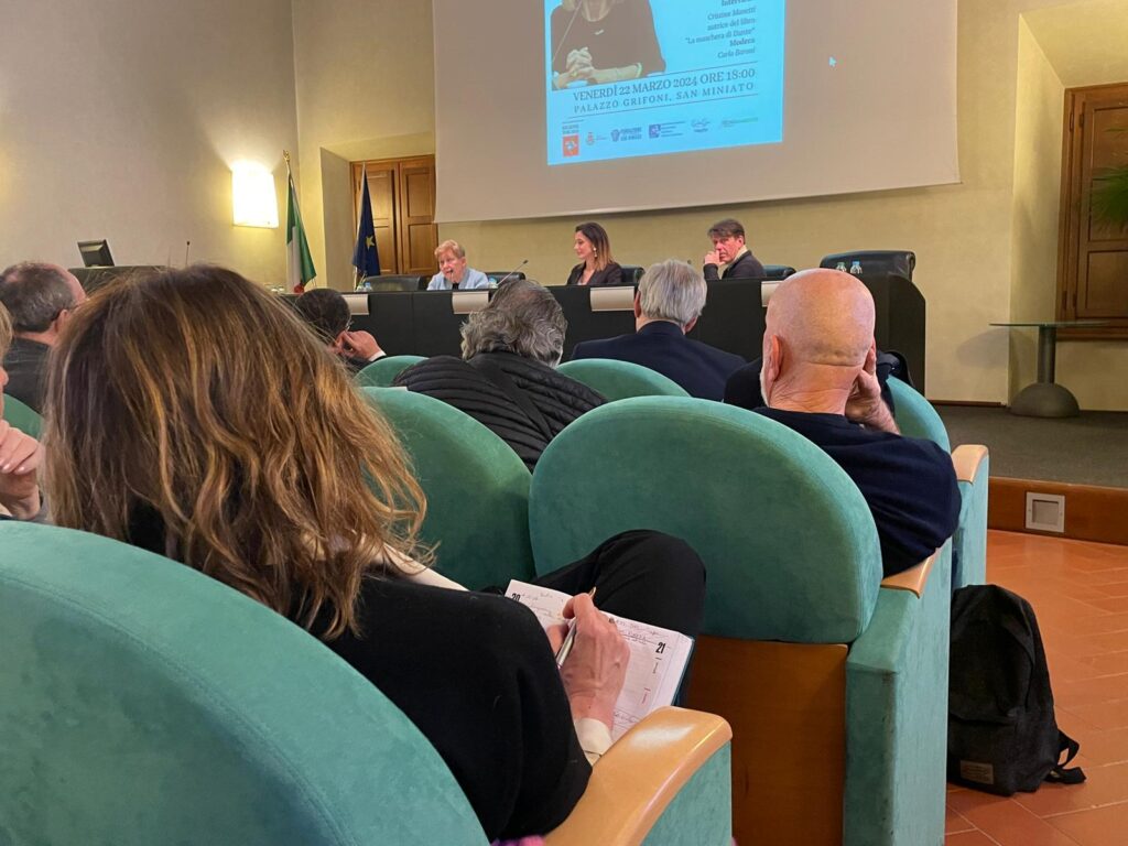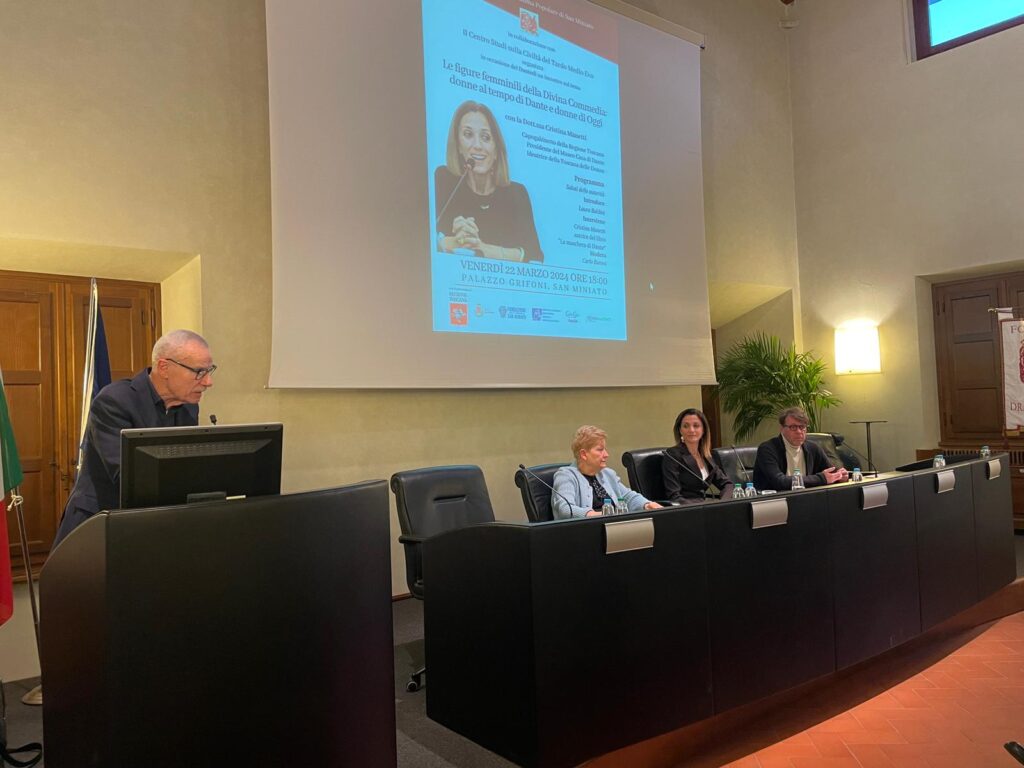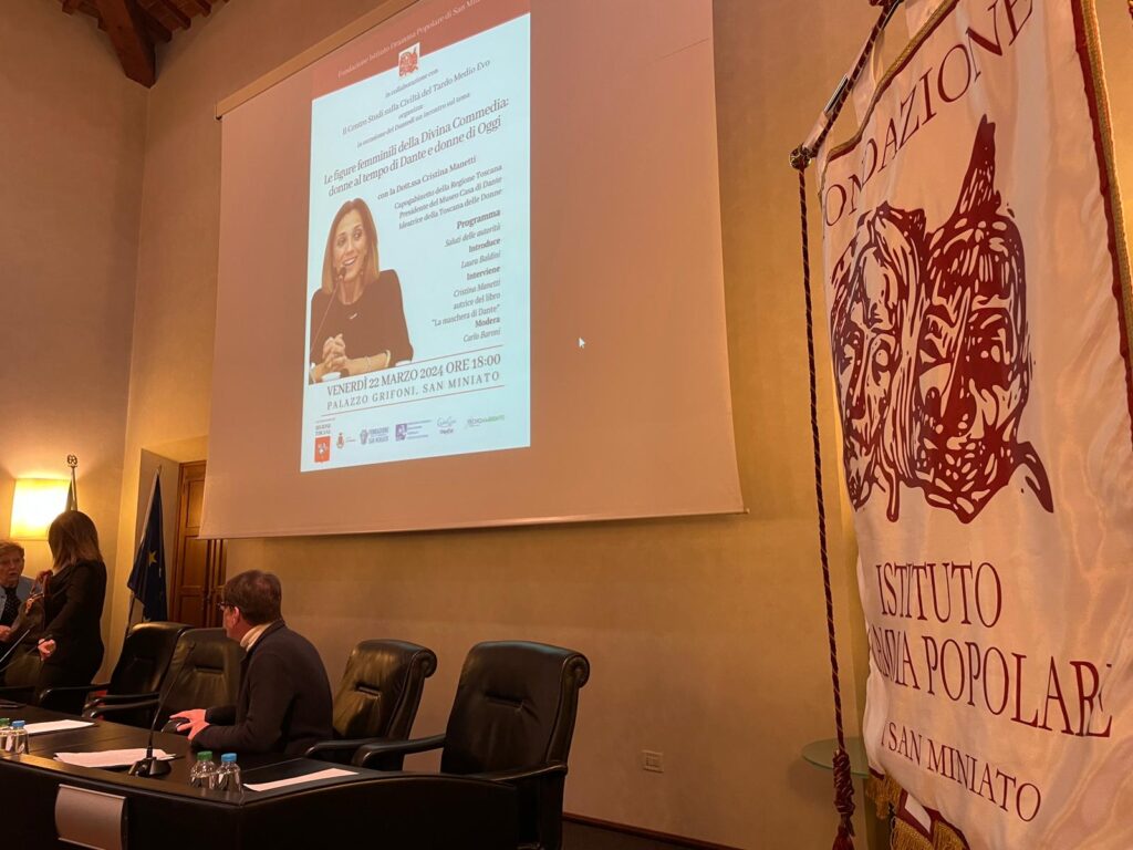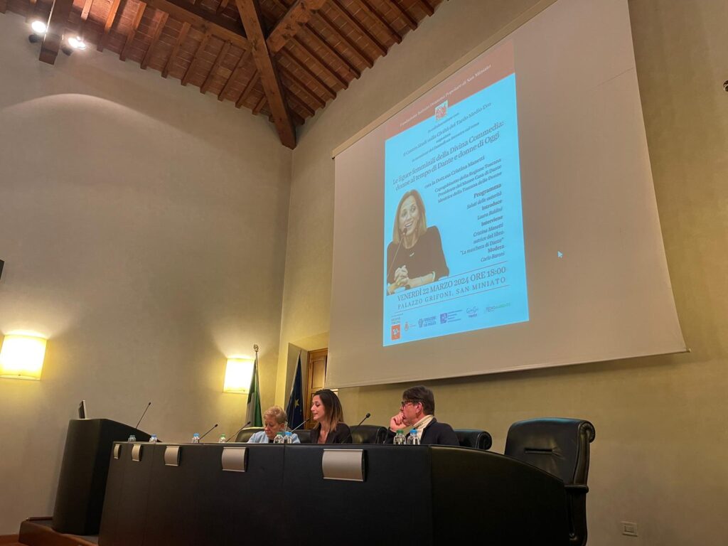 La conferenza, che si è tenuta oggi nella splendida cornice di Palazzo Grifoni a San Miniato, sede della Fondazione Cassa di Risparmio di San Miniato, è nata per iniziativa della Fondazione Istituto Dramma Popolare di San Miniato, con la collaborazione del Centro Studi Tardo Medioevo. Dopo i saluti istituzionali di Giovanni Urti, presidente della Fondazione Cassa di Risparmio di San Miniato, del sindaco Simone Giglioli e di Marzio Gabbanini, presidente del Dramma Popolare, Laura Baldini del Centro Studi Tardo Medioevo e il giornalista Carlo Baroni, hanno accompagnato Cristina Manetti in questo particolare viaggio dantesco.