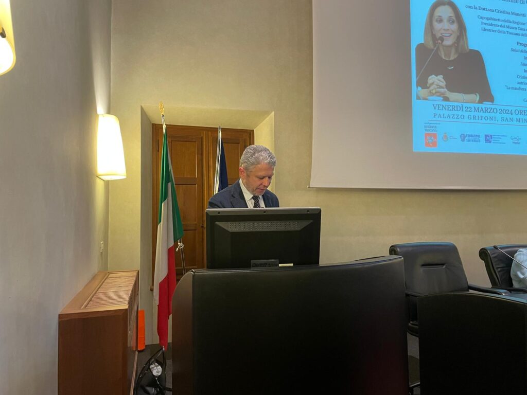 "Il Dramma Popolare - spiega Marzio Gabbanini - non si caratterizza solo per il festival che ormai è conosciuto da tutti, ma per tutta una serie di iniziative che continuano tutto l'anno e rientrano nei 'venerdì del Dramma'. Abbiamo già fatto diverse conferenze, recentemente abbiamo visto uno spettacolo in preparazione della Pasqua nella chiesta dei Santi Martino e Stefano a San Miniato Basso, perché fa piacere rappresentare gli spettacoli e le conferenze dove la gente si incontra e lavora, perché è un dramma popolare rivolto a tutti, ma che tiene conto del livello alto degli argomenti da trattare. Ecco appunto l'iniziativa di oggi. Da quando è stato istituito abbiamo sempre organizzato iniziative per il Dantedì, alzando sempre l'asticella, è un onore poter parlare di Dante con un ospite d'eccezione come la dottoressa Manetti"
