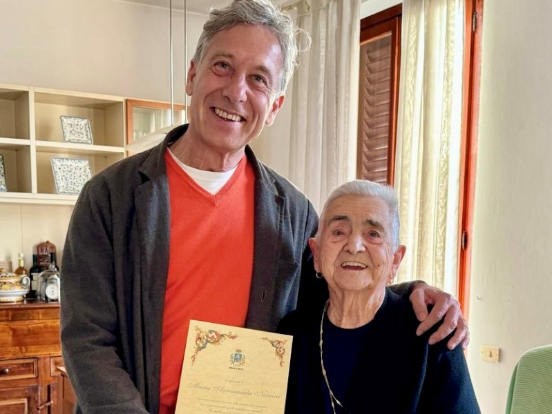 È bastato il tono di voce forte e chiaro della signora Maria Annunziata Norcini per capire lo spirito con cui oggi, lunedì 25 marzo 2024, ha spento cento candeline tra l’affetto di familiari e amici. Per lei un dono floreale e una pergamena ricordo, che sono stati consegnati dall’assessore Adolfo Bellucci in rappresentanza dell’amministrazione comunale.