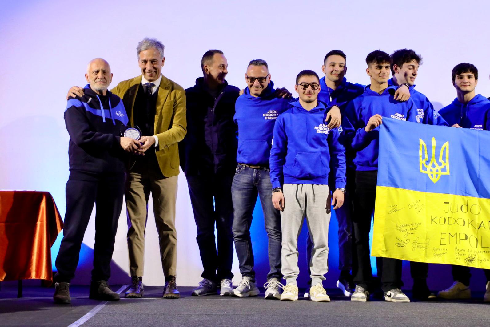 Le premiazioni sono proseguite con la quinta sezione, dedicata alla promozione dello sport a livello sociale, vincitore il Judo Kodokan, presente con il presidente Vittorio Borgianni, allenatori e atleti: a partire dal novembre 2023, la società ha fatto allenare un ragazzo ucraino di nome Ivan, scappato dalla guerra in Ucraina ad appena 14 anni per trovare rifugio a Castelfiorentino, senza i genitori, ospite dagli zii e con un’unica grande passione, il judo, che praticava anche a Kharkiv, la sua città. Lì Ivan è tornato dopo aver vissuto per circa un anno in Italia, con gli amici del Judo Kodokan nel cuore. Sul palco anche lo zio di Ivan, Igor, che ha espresso la sua gratitudine alla società. Un momento di grande commozione, culminato con la consegna del premio da parte dell’assessore Bellucci.