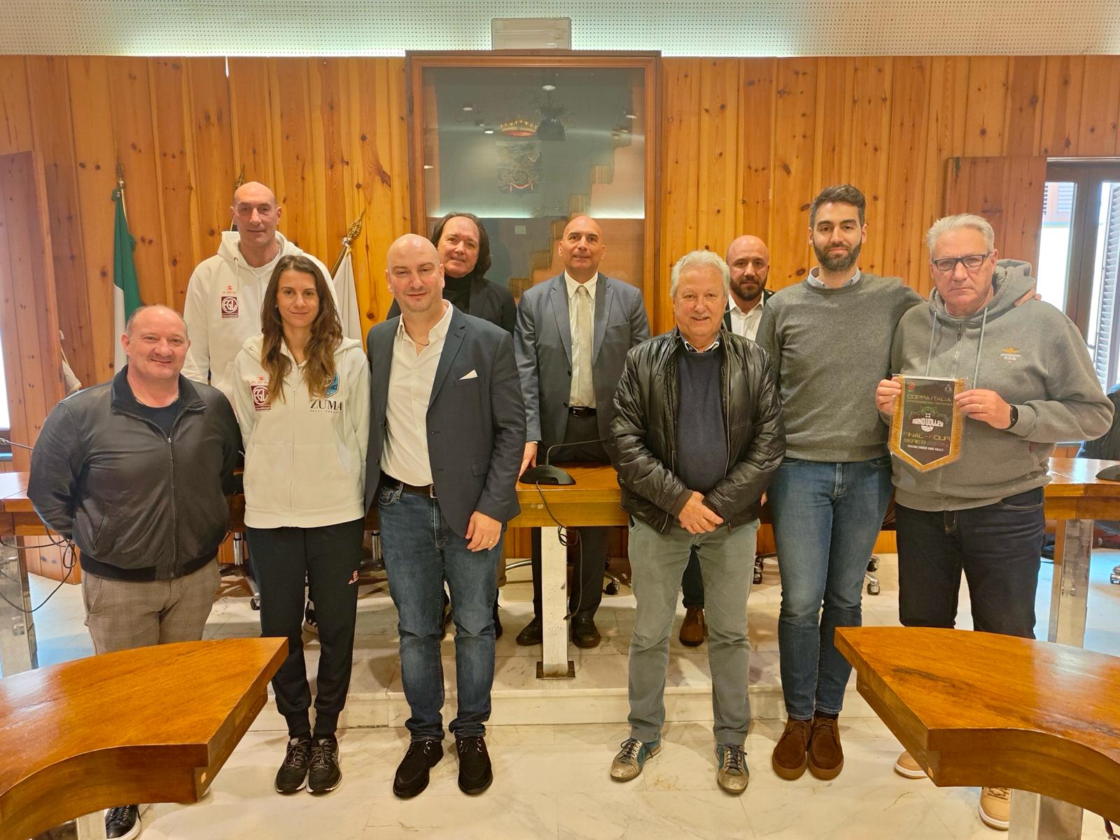 Nell'occasione anche il sindaco Gabriele Toti e il vicesindaco con delega allo sport Federico Grossi accompagneranno le due squadre e le seguiranno dagli spalti. Intanto le due società sono state accolte stamani (27 marzo) in sala consiliare proprio da sindaco e vicesindaco, per presentare questa due giorni speciale: “Vedere che su 12 finaliste totali ce ne sono 2 della nostra città – sottolinea il sindaco Toti – è fonte di grande orgoglio nonché dimostrazione della vivacità, del radicamento sul territorio e del livello raggiunto da dirigenti, allenatori e atleti”. Sulla stessa lunghezza d’onda il vicesindaco e assessore allo sport Federico Grossi: “E’ la prima volta che questo accade ed è bello, perché si premiano gli sforzi di queste due importanti realtà sportive; queste due qualificazioni alle finali di Coppa Italia sono il coronamento di un percorso avviato a luglio scorso e speriamo che sabato sia una giornata da segnare negli annali sportivi della nostra comunità”. La Fgl Zuma sarà guidata da mister Marco Bracci, un nome di livello internazionale e che ha scritto la storia del volley italiano: “Non ci tiriamo indietro davanti a questa sfida, che affronteremo con le nostre migliori armi, consapevoli di competere con squadre altrettanto forti. Già con l’Azimut Giorgione sarà difficilissima: le stiamo studiando e stiamo lavorando su ogni dettaglio; per tante nostre ragazze sarà una novità, ma noi saremo capaci di affrontare le insidie che ci troveremo davanti dentro e fuori dal palazzetto. Non dovremo arrivare lì con l’ossessione di vincere ma col desiderio di goderci una manifestazione del genere esprimendo il nostro meglio”. Bracci era affiancato dalla capitana Agata Zuccarelli, che ha sottolineato che la squadra si sta allenando sempre meglio e che il gruppo non vede l’ora di giocarsi le proprie carte in quel di Campobasso. Soddisfazione è stata espressa anche dal main sponsor