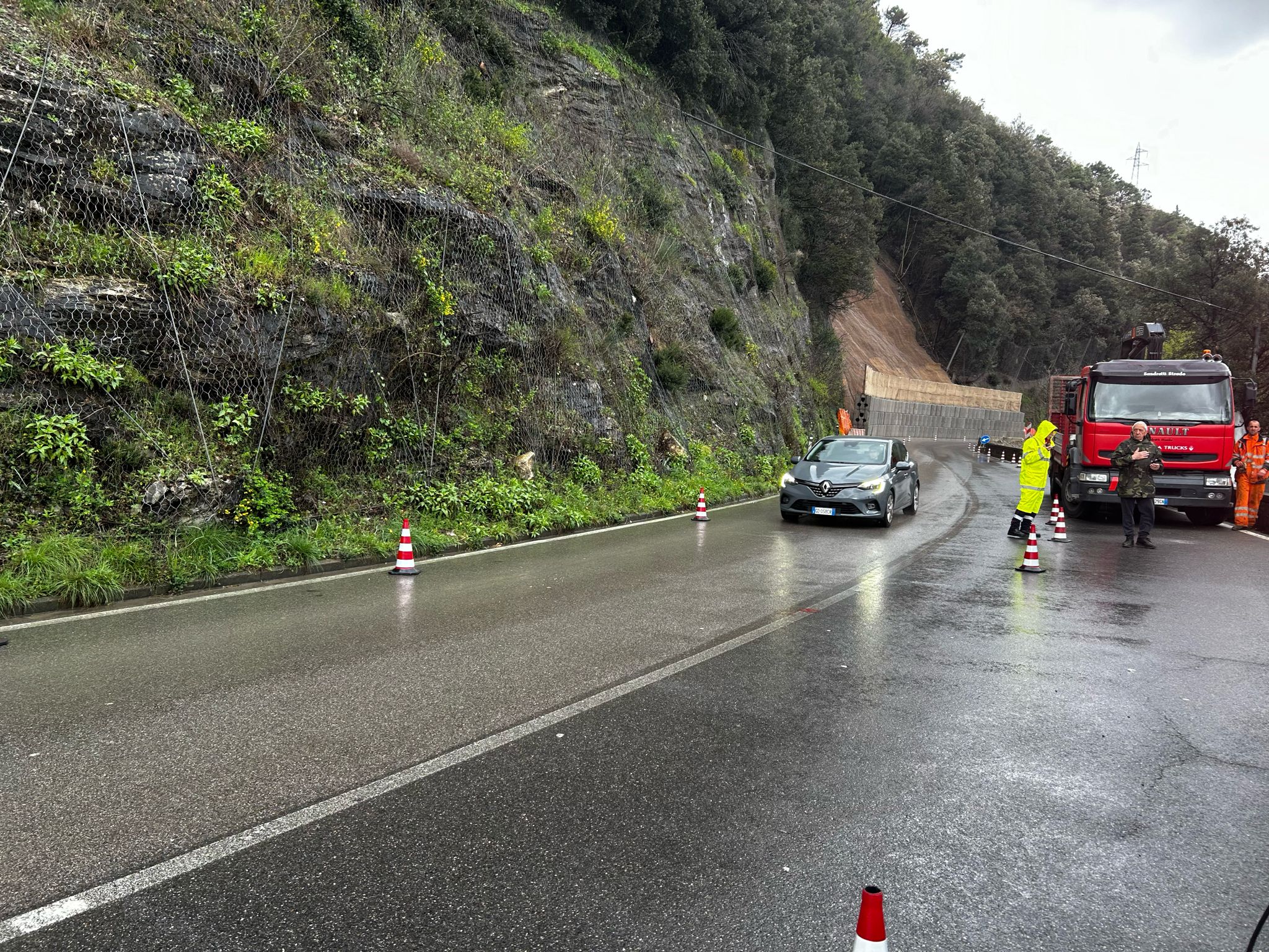 Semaforo verde per la riapertura della SR325. Dopo la chiusura causata dalla frana dello scorso 1 marzo, il tratto di strada in località Camino-Le Coste è stato oggi riaperto al traffico, con un sistema di senso unico alternato regolato da un semaforo. Alle ore 14.00 i primi veicoli sono tornati a percorrere il tratto di strada, segnando un importante passo avanti nella riapertura della viabilità della zona.