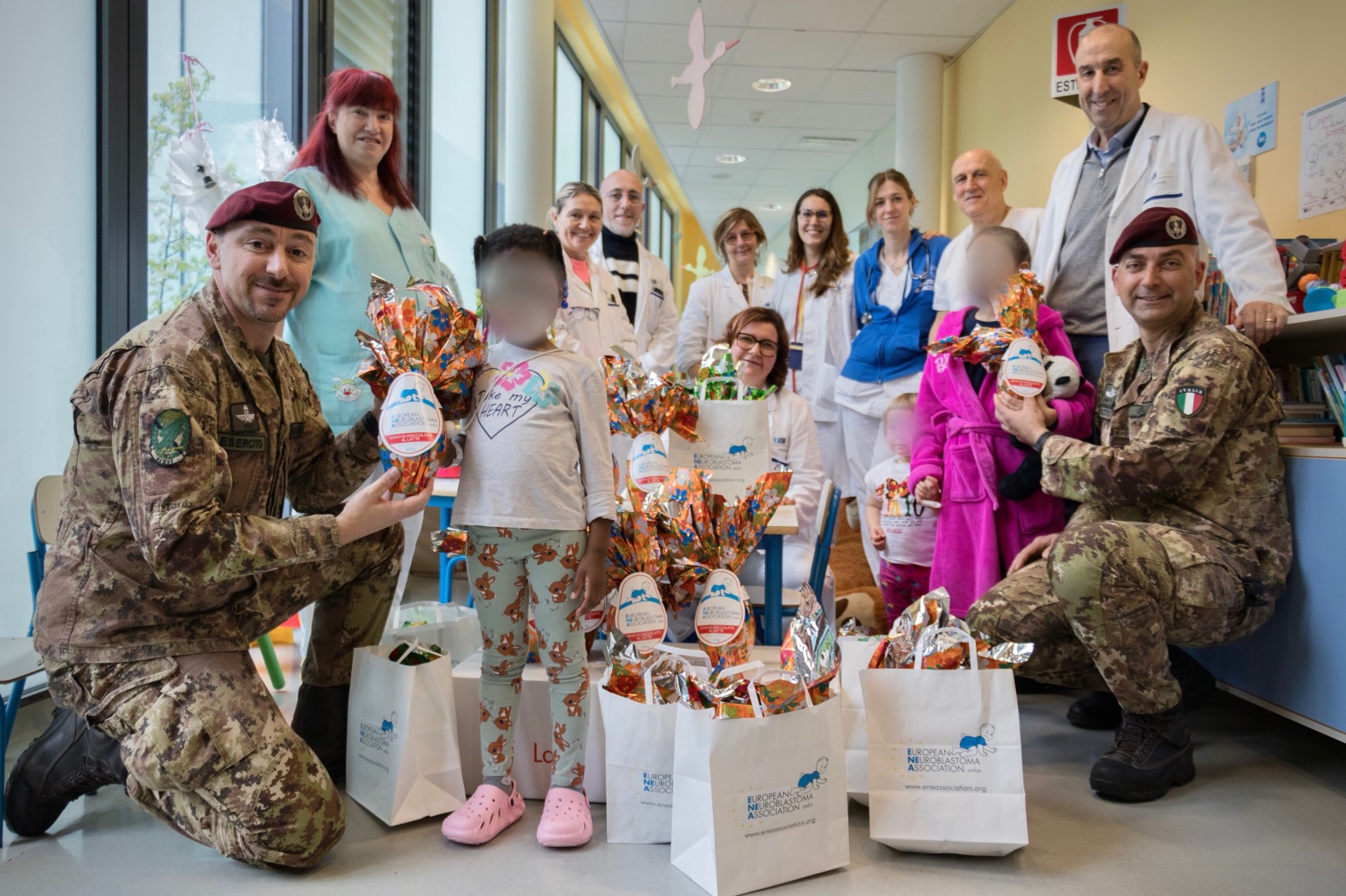 Il 183° Reggimento Paracadutisti Nembo, anche quest’anno ha voluto augurare buona Pasqua ai piccoli pazienti del reparto di pediatria dell’ospedale San Jacopo di Pistoia, portando loro in dono le tradizionali uova di cioccolato.