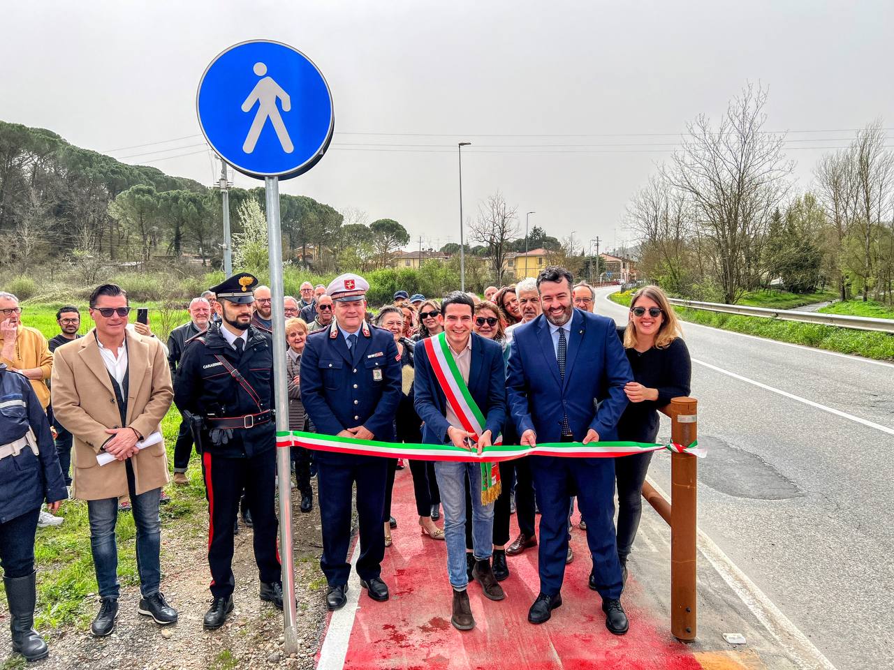 Sabato 30 marzo 2024 il Sindaco di Montespertoli, Alessio Mugnaini, ha inaugurato il nuovo percorso pedonale di Anselmo, alla presenza dell’azienda che ha realizzato l’intervento (Scaviter srl), a rappresentanti dell’Amministrazione comunale e del Servizio Lavori Pubblici e a tanti cittadini residenti nella zona. Nel corso della cerimonia, che ha visto il taglio del nastro proprio lungo la pista recentemente realizzata, il Sindaco ha espresso tutta la soddisfazione per un intervento che la cittadinanza attendeva da anni: “Questo investimento nasce sei anni fa in una accesa discussione con i residenti dell’Anselmo, fatta proprio nel circolo. Fu lì che i cittadini ci chiesero un cambio di passo deciso per migliorare il decoro della frazione, dotarla di un percorso pedonale e soprattutto mitigare la velocità del traffico. Oggi possiamo dire che è stato grazie a quel confronto che siamo riusciti a realizzare tutto questo: una nuova rotatoria, nuovi marciapiedi, una pista pedonale che collega i nuclei abitati della frazione, sette portali luminosi per l’attraversamento pedonale e due autovelox. Un investimento a trecentosessanta gradi sulla frazione, reso possibile in larghissima parte da fondi esterni al bilancio comunale”.