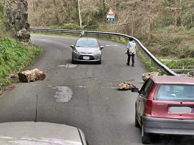 Alcuni massi di notevoli dimensioni si sono staccati dalla parete rocciosa he costeggia la strada, piombando sulla carreggiata dove transitavano auto. Per fortuna nessun automobilista è stato coinvolto nella caduta dei massi.