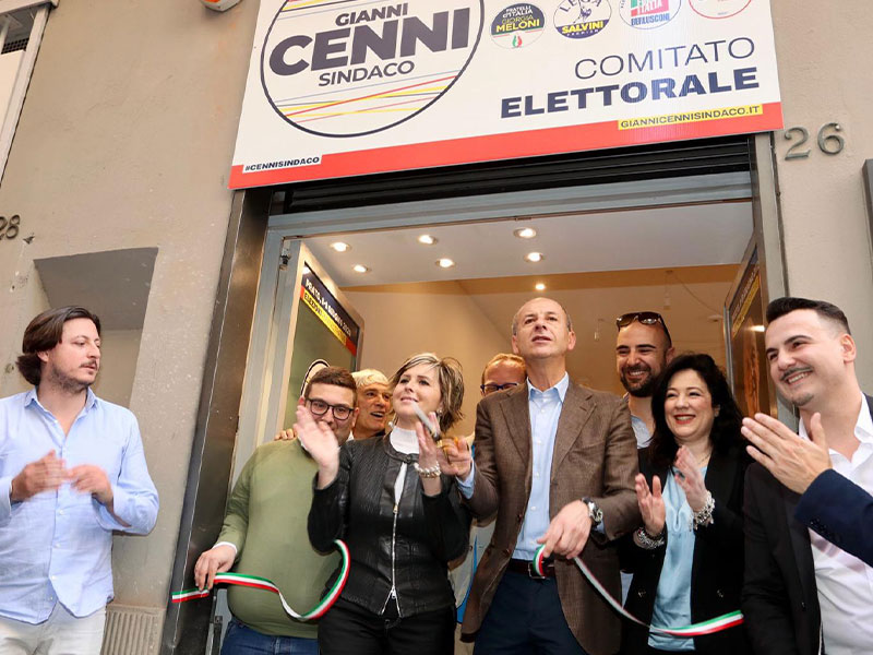 Un vero e proprio di bagno di folla, un tifo da stadio e il nome di Gianni urlato a tutta voce. Una festa da tutto esaurito quella per l’inaugurazione del comitato elettorale della coalizione del centrodestra e sede della lista civica ‘Gianni Cenni sindaco’, in corso Mazzoni, a una manciata di metri dal Palazzo comunale. Il taglio del nastro, a cui è seguita la benedizione dei locali affidata a don Marco Pratesi, è stato accompagnato da applausi, entusiasmo, qualche lacrima di emozione. “Questa è la casa di tutti – le parole di Gianni Cenni – è la casa di chi vuole cambiare passo, di chi vuole lavorare per il bene comune. Un luogo di lavoro, ma anche un luogo di incontro, confronto, ascolto e soprattutto un punto di aggregazione nel quale stare insieme anche solo per qualche battuta”.