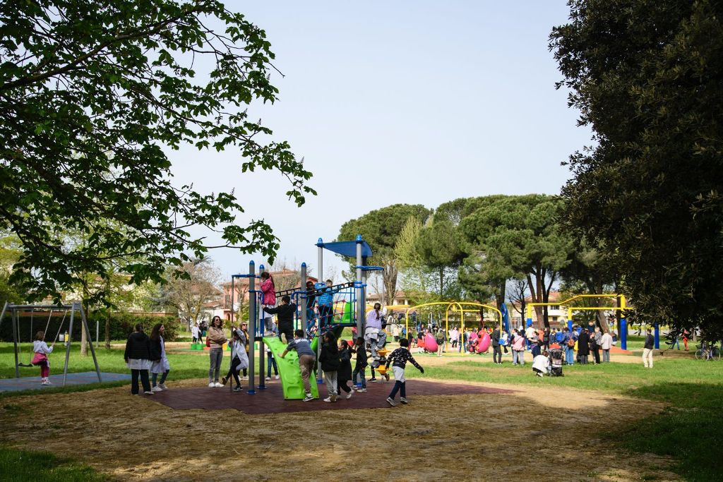 L’amministrazione avendo installato tutti i giochi nuovi in questo parco i bambini che frequentavano altri parchi si ritrovano in questo luogo e quindi gli altri parchi sono semi vuoti e questo stracolmo. Capisco bene che per fare una bella figura prima delle elezioni comunali ha voluto concentrare tutti i giochi in un solo parco e con tanti bambini intorno ma facendo così negli altri parchi non ci andrà più nessuno.