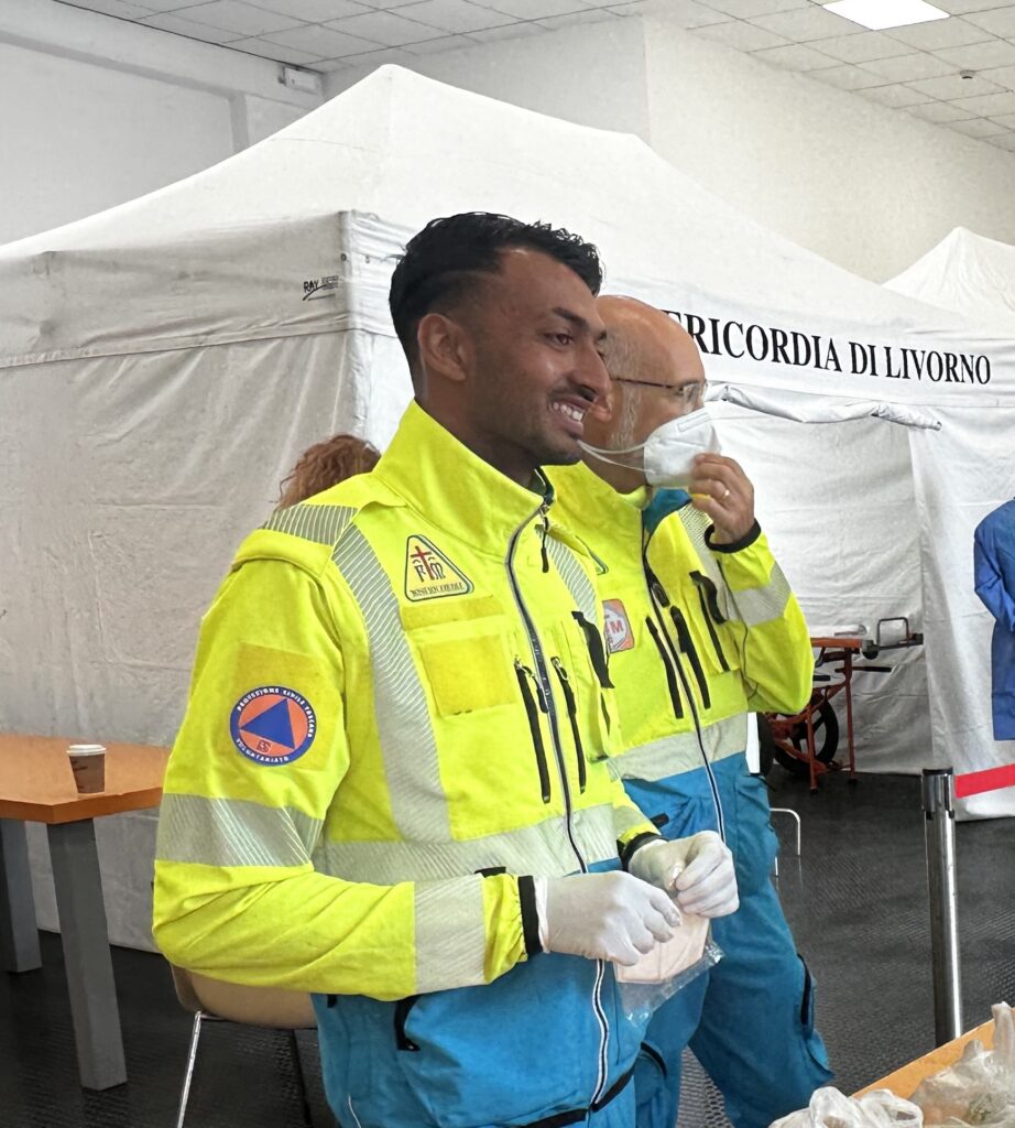 A dicembre 2023 ha iniziato il percorso come volontario di protezione civile alla Misericordia di Livorno, mostrandosi fin da subito operativo e attivo. Da quando ha superato l’esame, lo sbarco della Ocean Viking è stato il suo primo vero intervento di protezione civile.