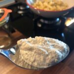 Mettete in un mix le noci, il parmigiano, il latte, la noce moscata grattugiata o in polvere, sale e pepe aggiungete poi un po’ di acqua calda di cottura della pasta che avete messo a cuocere, si formerà un composto morbido e omogeneo con il quale condirete la pasta. Potete modificare la quantità di liquidi a seconda della densità che si desidera ottenere. Im molte ricette tra gli ingredienti c’è anche la mollica di pane, ma Irene non l’ha utilizzata e con il latte e il formaggio la cremosità si raggiunge lo stesso. Irene per cuocere la pasta ha utilizzato l’acqua di cottura dei fagiolini lessi cotti in precedenza, che ha reso tutto più saporito. Se il condimento della pasta avesse una consistenza troppo granulosa aggiungete un filo di olio. Irene ha voluto condividere questa ricetta perché ama le noci e spesso compra i sughi pronti, che però sono più sapidi e acidi, sicuramente anche a causa dei conservanti. Mentre realizzandola con questi pochi ingredienti si ottiene una crema più delicata ma comunque saporita, anche se le noci costano un po’ di più ne vale la pena. Secondo Irene la quantità di salsa che si realizza con questi ingredienti si possono condire fino a 4 porzioni di pasta.