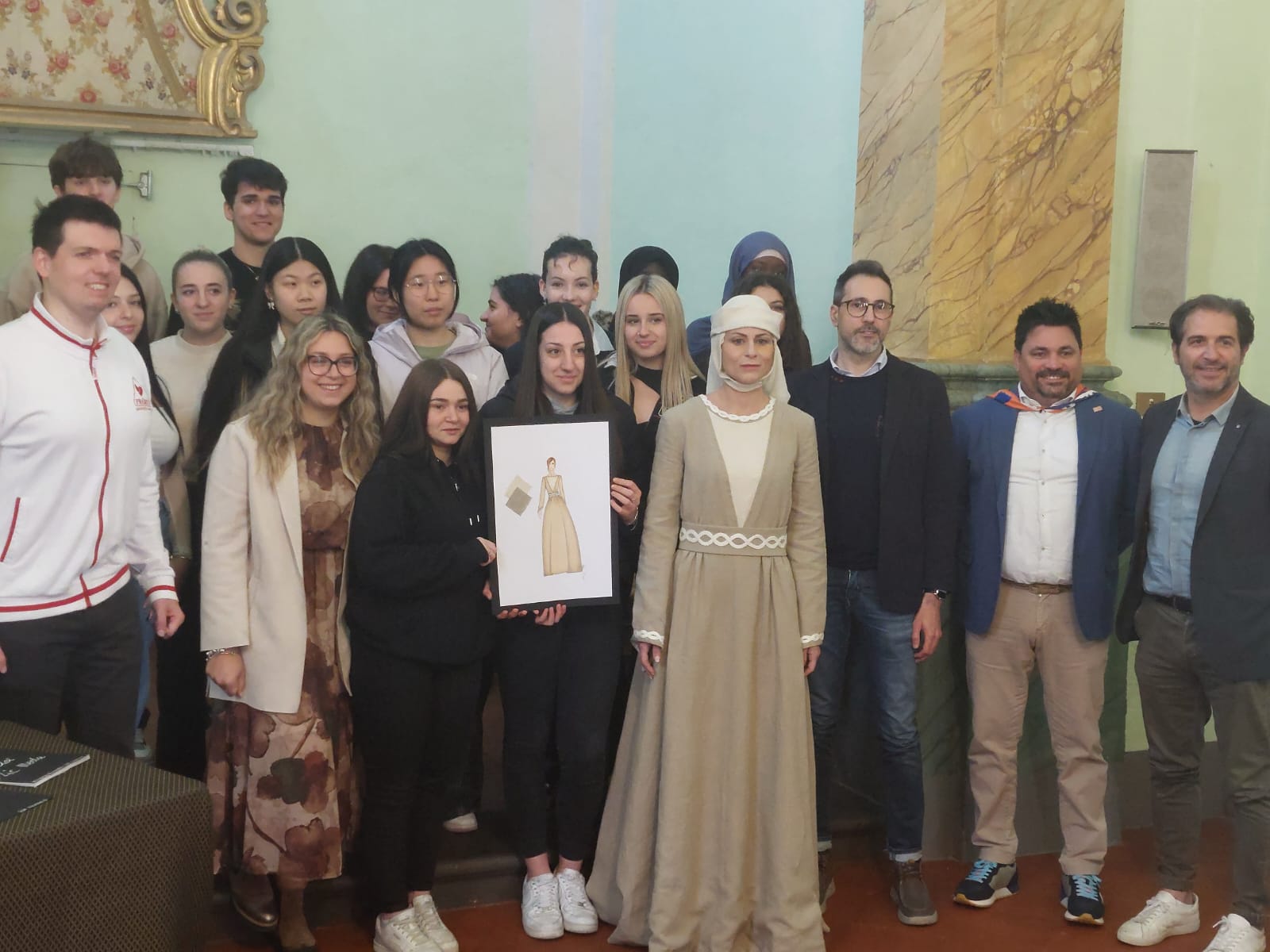 Stamani, presso la "Sala del Poggio", è stato consegnato alla Contrada San Pierino, vincitrice dell'ultima edizione della "Corsa alla Solidarietà", il vestito confezionato dalle ragazze e dai ragazzi della 4ª C dell'indirizzo Moda del I.I.S. "A.Checchi di Fucecchio".