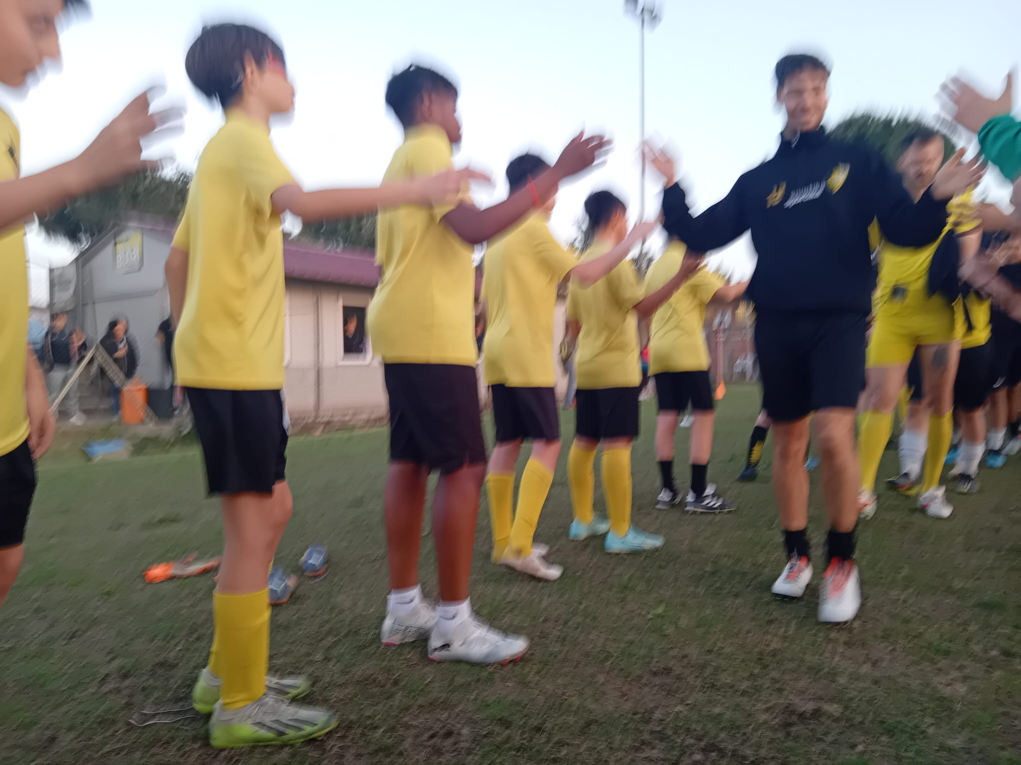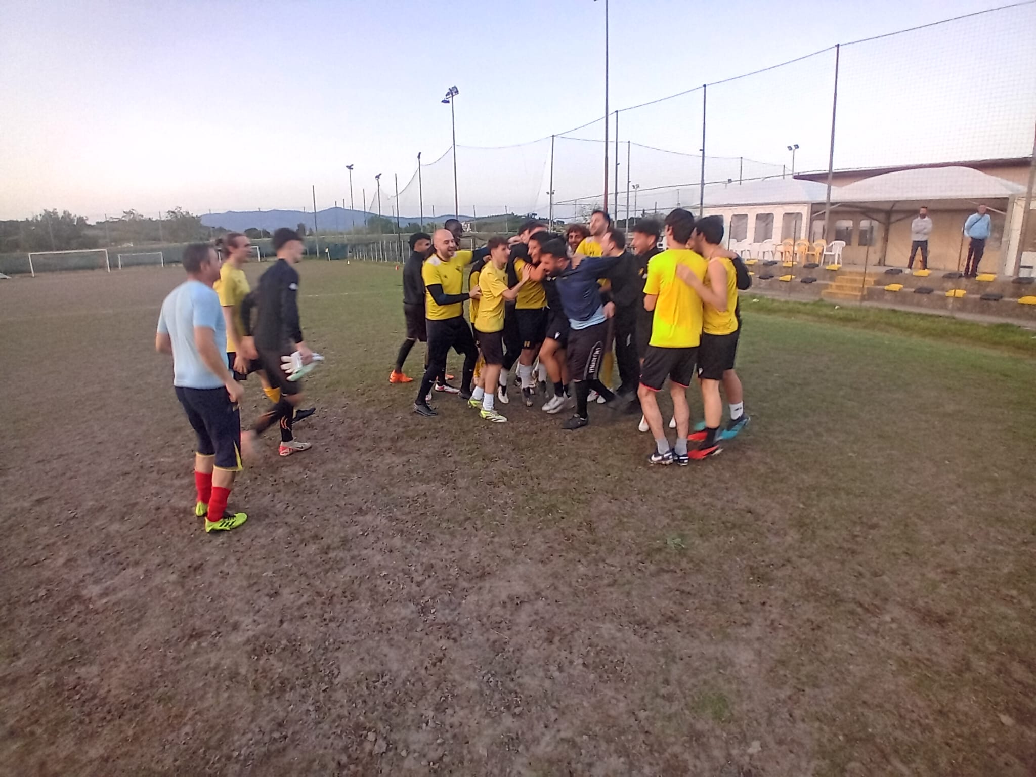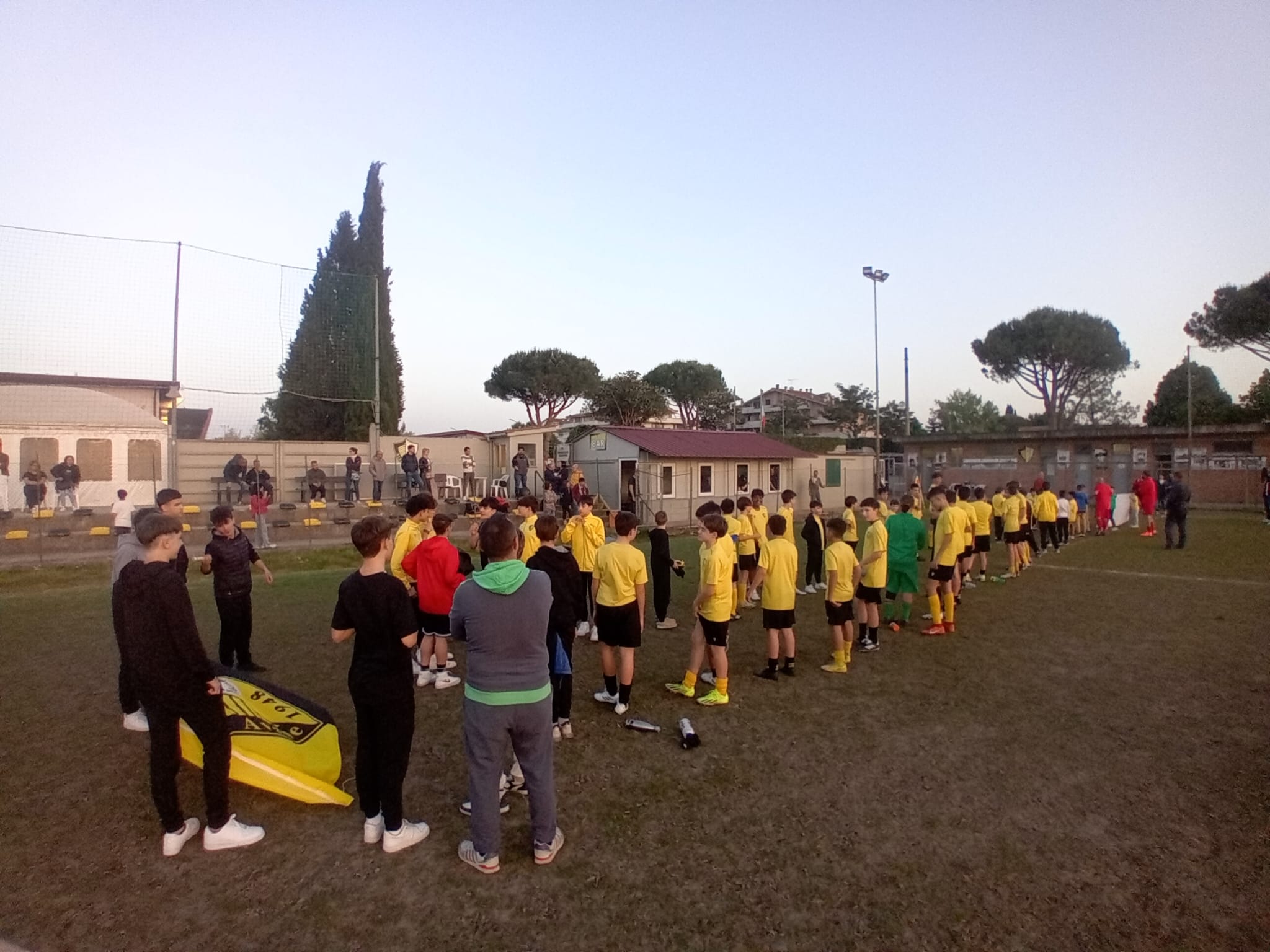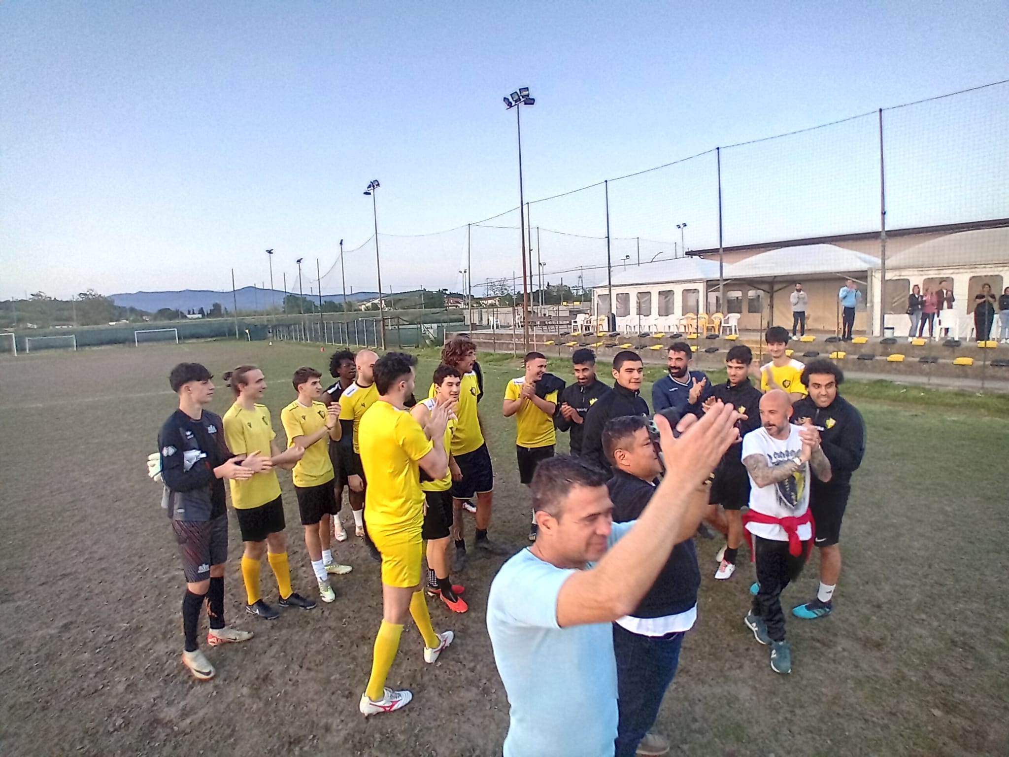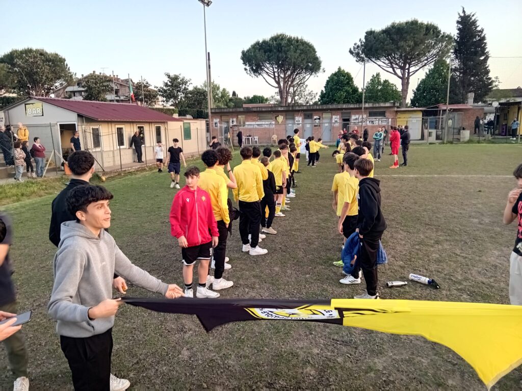 Gli uomini di mister Francesco Coppola sono stati accolti da due file di bambini e ragazzi del settore giovanile giallonero, che li hanno attesi sul campo nei minuti che hanno preceduto l'allenamento serale della prima squadra.