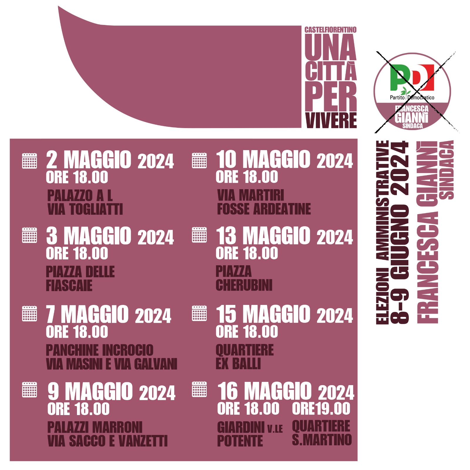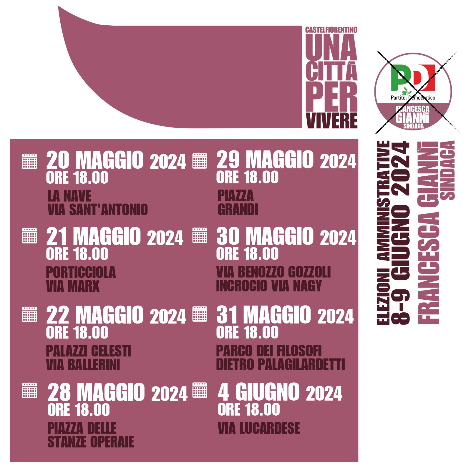 La campagna del Partito Democratico di Castelfiorentino a sostegno della Candidata Sindaca Francesca Giannì per le prossime elezioni amministrative dell’8 e 9 giugno entra nel vivo.