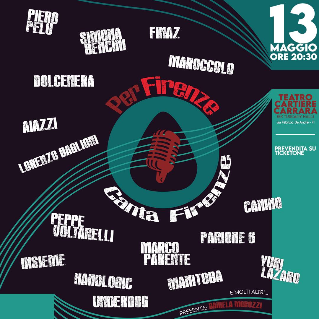 Alessandro Canino, Antonio Aiazzi, Dolcenera, Finaz, Gianni Maroccolo, /handlogic, Insieme, Lorenzo Andreaggi, Lorenzo Baglioni, Marco Parente, Parione 6, Peppe Voltarelli, Piero Pelù, Simona Bencini, Underdog, Yuri Lazaro, Manitoba saranno lunedì 13 maggio sul palco del Teatro Cartiere Carrara di Firenze (ex Tuscany Hall) per “Firenze… Canta Firenze!”, l’evento benefico organizzato da Rotary Club Firenze Brunelleschi in collaborazione con Arte Residente e Teatro Cartiere Carrara.