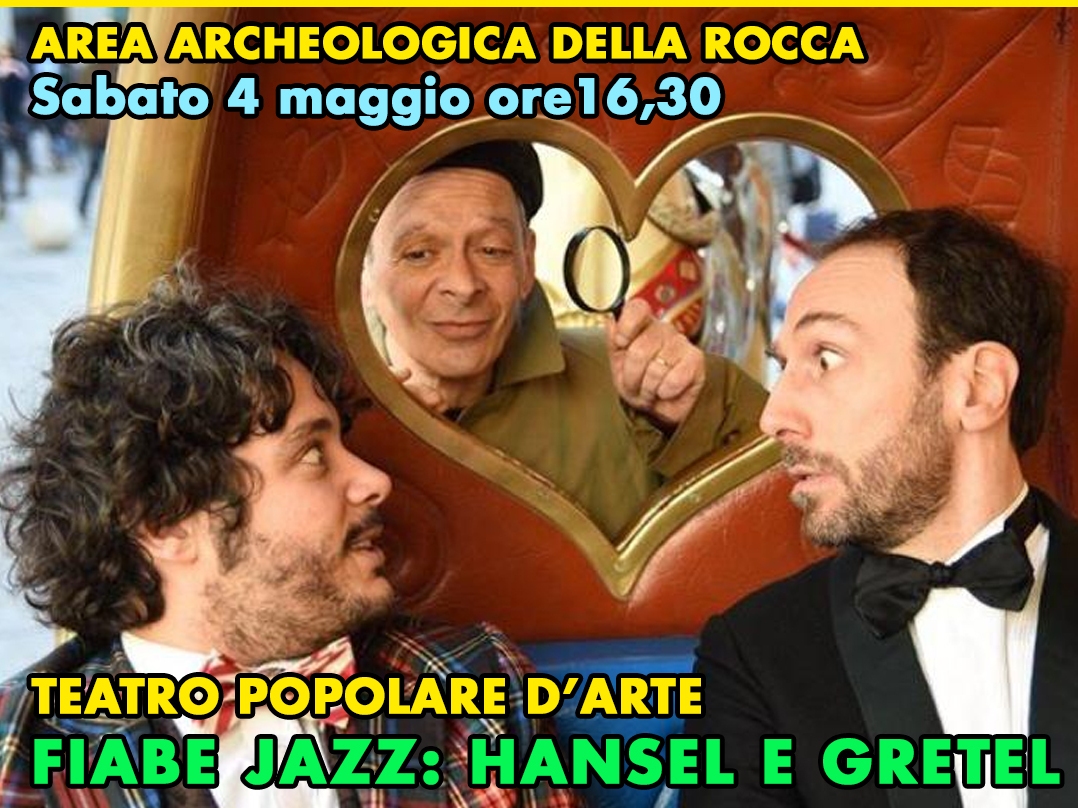 La Compagnia Teatro popolare d'arte metterà in scena Hansel e Gretel – fiabe jazz: partendo dalla celebre fiaba, si vedrà come attraverso la fantasia potrà essere superato qualsiasi tipo di imprevisto. Un mix tra invenzione teatrale e incursione musicale. Idea portante dello spettacolo è il concetto di imprevisto che rende, nel bene e nel male, più avventuroso il viaggio, esattamente come quando si è a bordo di una mongolfiera in balia delle correnti d’aria, noi possiamo solo decollare o atterrare. La direzione viene decisa dal vento, dal fato e dall’imprevisto.