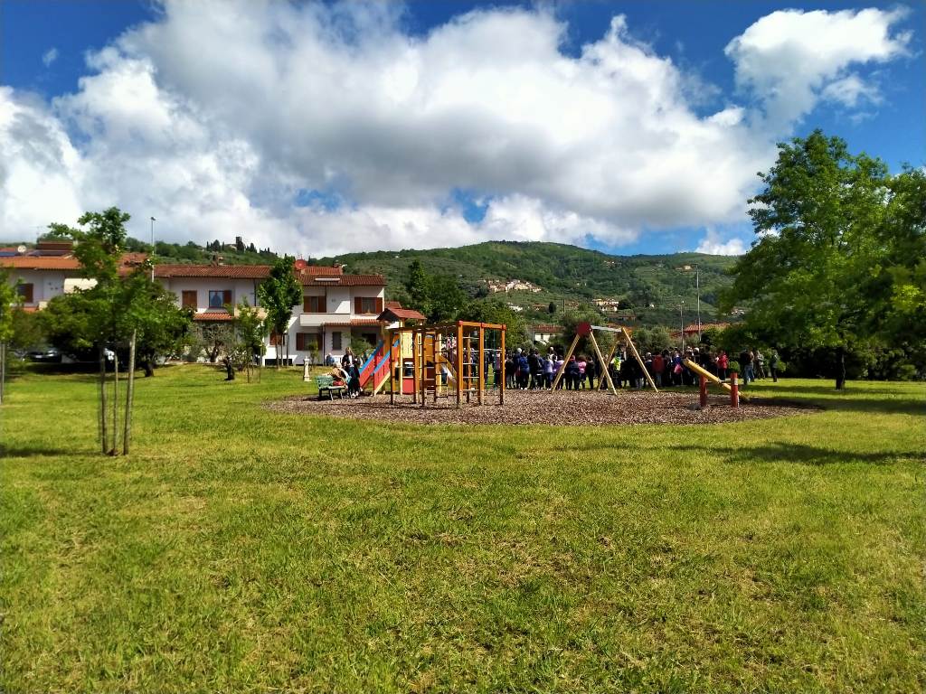 L’area a verde intitolata stamani è stata completamente riqualificata dal Comune con la messa a dimora di una sessantina di alberi (betulle, gelsi ornamentali, querce, liquidambar, melograni, aceri e ginkgo biloba), una nuova area giochi per bambini formata da uno scivolo, altalene, il bilico e la palestrina. Presente anche un campo per calcetto. L’area è inoltre dotata di panchine e cestini porta rifiuti. Infine sono stati ripristinati i viali interni, installate due fontanelle e un nuovo impianto di irrigazione.