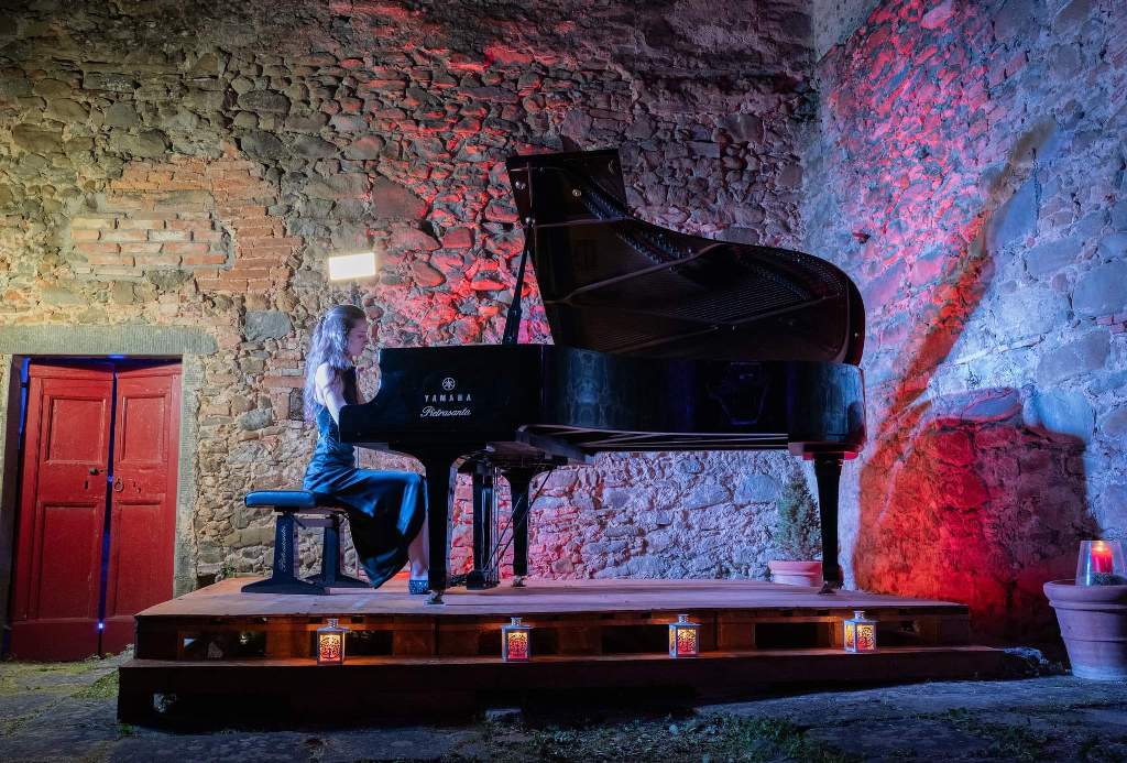 L’artista ha eseguito tre sonate, di Beethoven, Schumann e Scriabin, brani che raramente vengono eseguiti dal vivo per la loro difficoltà. Katrina ha 29 anni e vive a Dresda dove continua a studiare ed esercitarsi. Molto nota sui social si distingue per una forte propensione artistica ed una elevatissima tecnica pianistica, doti che la rendono già molto famosa e che si sono esplicitate chiaramente durante il concerto a Vinci. Per l'occasione il cortile interno del Mulino si è rivestito di luci e colori e ha sfoggiato il nuovo palco approntato per la rassegna estiva 2024.