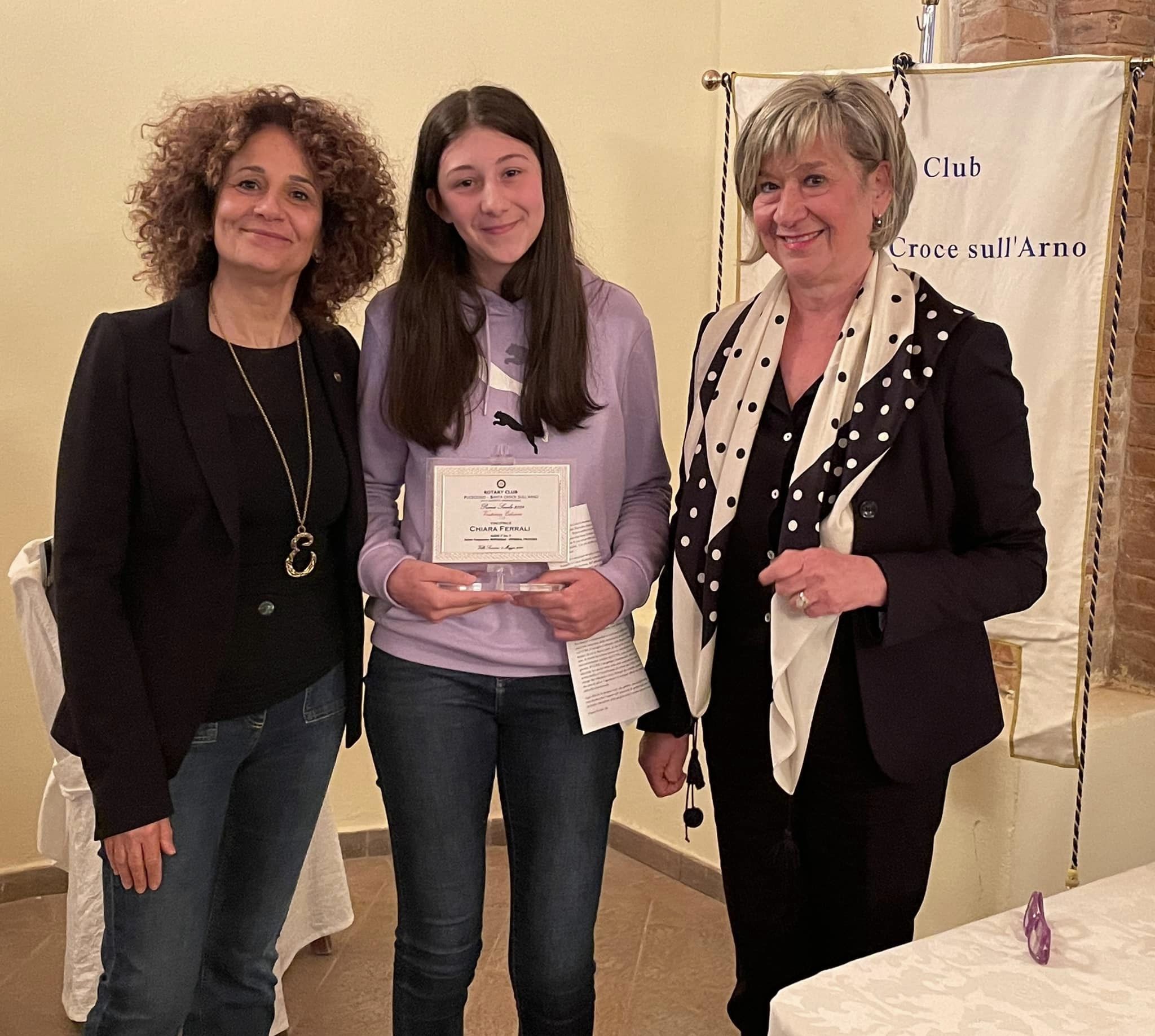 I complimenti per la vincitrice e le menzionate sono arrivati anche da Emma Donnini, vice sindaco e assessore alla scuola del comune di Fucecchio, e da Angela Surace, dirigente dell’Istituto Montanelli Petrarca di Fucecchio, la scuola vincitrice che riceverà, nella prossima conviviale del 10 maggio 2024, il consueto assegno da 1.000 euro da utilizzare per l’acquisto di materiale didattico.