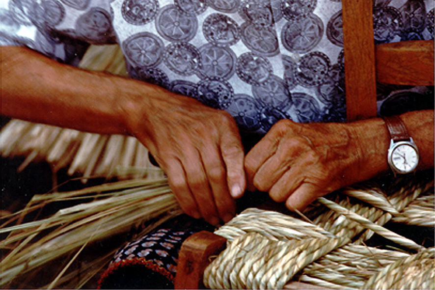 Lavorazione delle erbe: trecce e cordini con la “sala” per la realizzazione di un manufatto (borsa o contenitore).