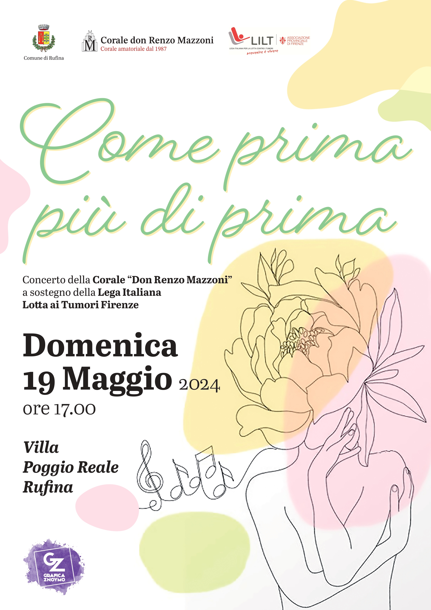 Domenica 19 maggio alle 17 alla Villa Poggio Reale di Rufina si terrà l'evento “Come prima più di prima”, concerto tenuto dalla corale Don Renzo Mazzoni, diretta dal maestro Gabriele Spina, con il maestro Giampiero Bernini al pianoforte.