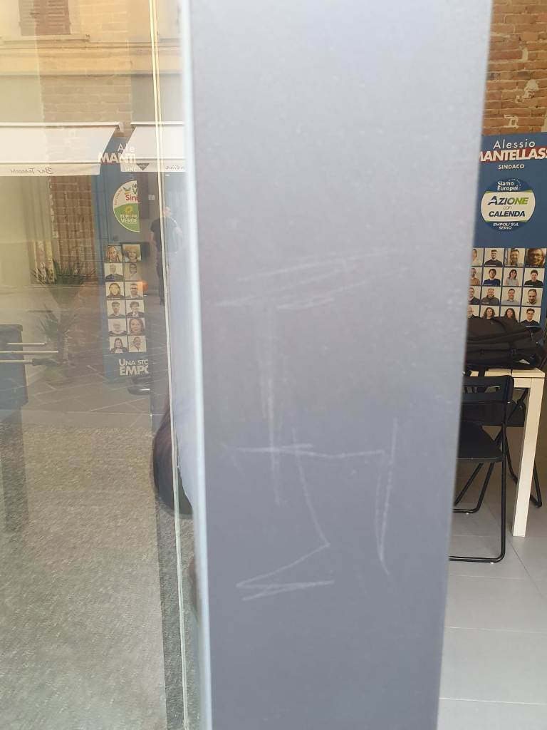 La sede del comitato elettorale di Alessio Mantellassi, candidato sindaco del centro sinistra a Empoli, è stata vandalizzata, probabilmente fra domenica e lunedì. La sede è stata riaperta ieri, lunedì 13 maggio, e subito sono state notate sulla facciata esterna e ai lati dell’ingresso disegni di alcune, croci celtiche e scritte inneggianti al Duce.