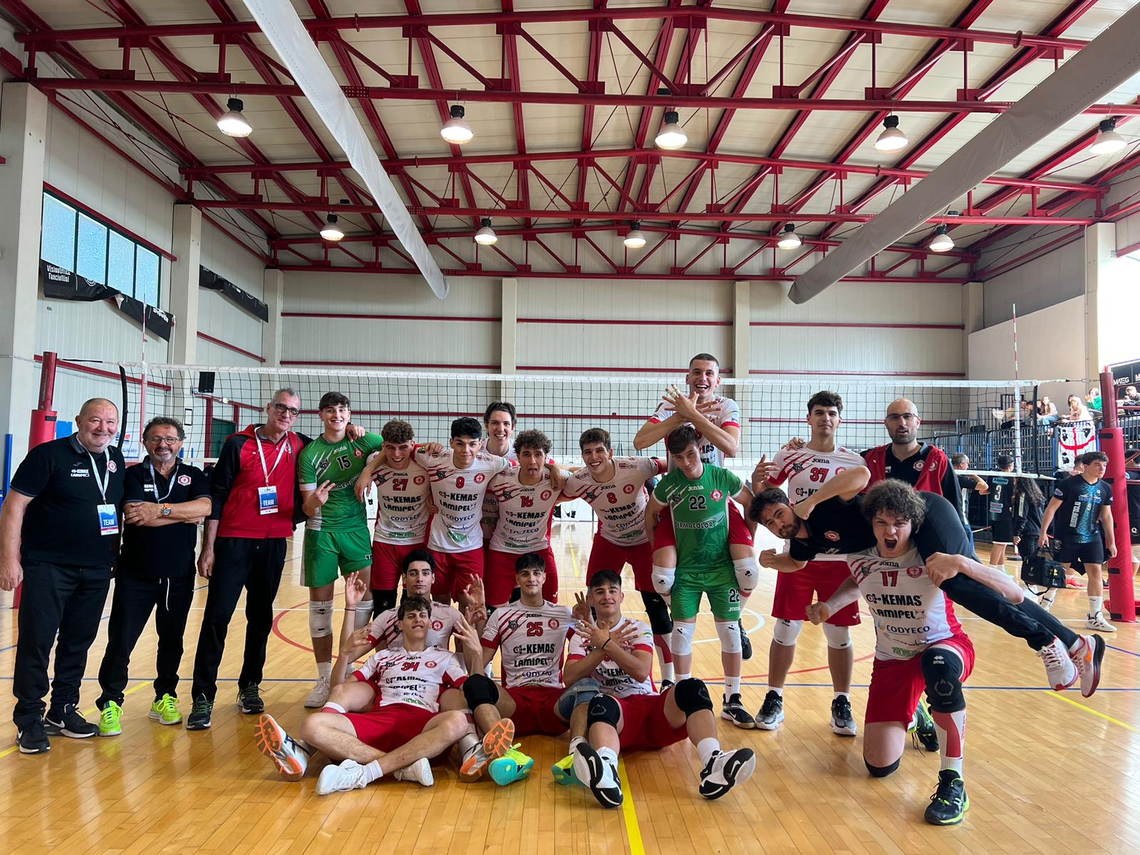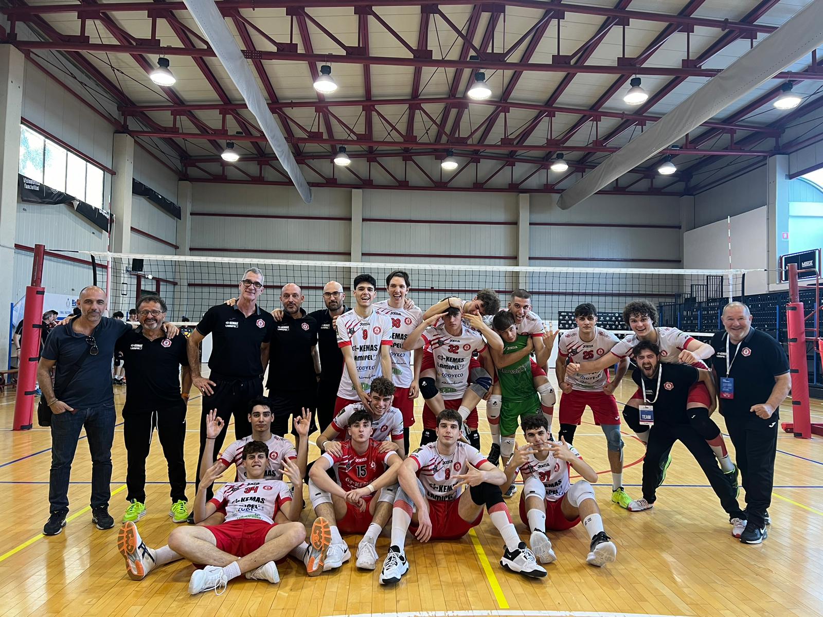 La prima giornata delle finali nazionali Under 19 maschili è andata benissimo per la Kemas Lamipel. Due vittorie su due per i Lupi biancorossi di Santa Croce sull'Arno, impegnati nel Palazzetto di Trestina contro Quadrifoglio Volley Porto Torres (Sardegna) e STS Volley Bolzano (Alto Adige).
