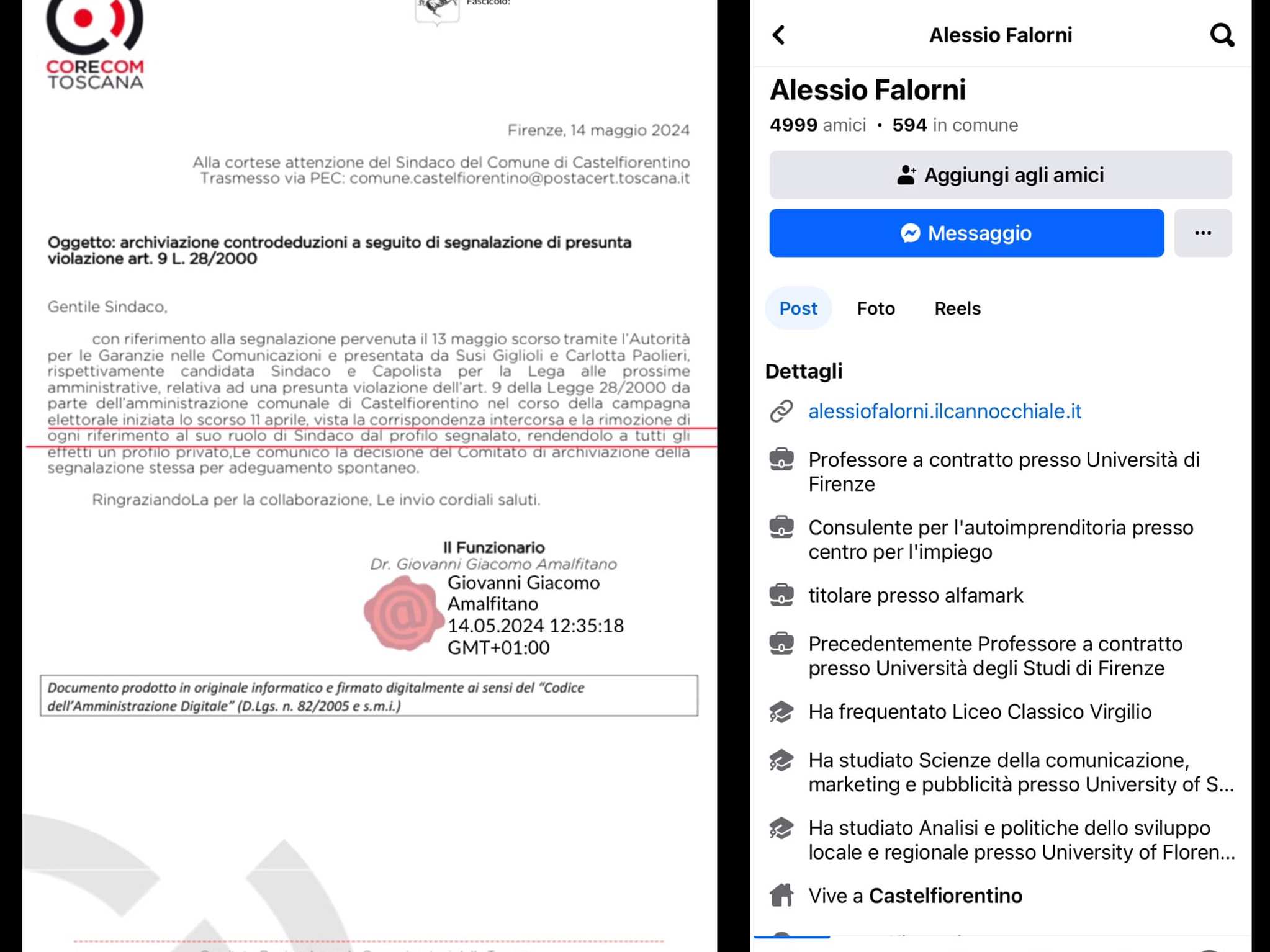 Da ciò è emerso che il Sindaco, contravvenendo a quella specifica norma non avrebbe potuto fare propaganda elettorale con un profilo FB riconducibile al suo ruolo istituzionale, pertanto il profilo FB del “Sindaco Falorni” e “Presidente dell’Unione dei Comuni” è diventato il semplice profilo del Sig. Falorni per specifico adeguamento disposto dall’autorità competente.