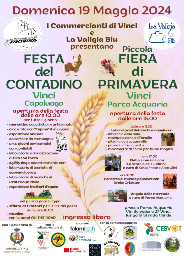 Tutta la città di Vinci in festa Domenica 19 Maggio con l’Associazione La Valigia Blu e Vincincentro per omaggiare la Primavera, la Natura, la gioia, l’allegria.