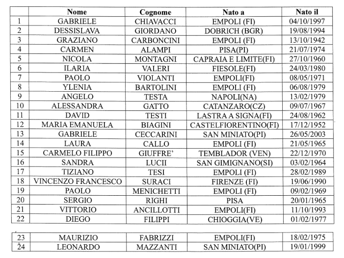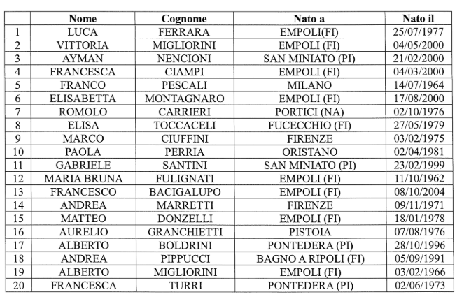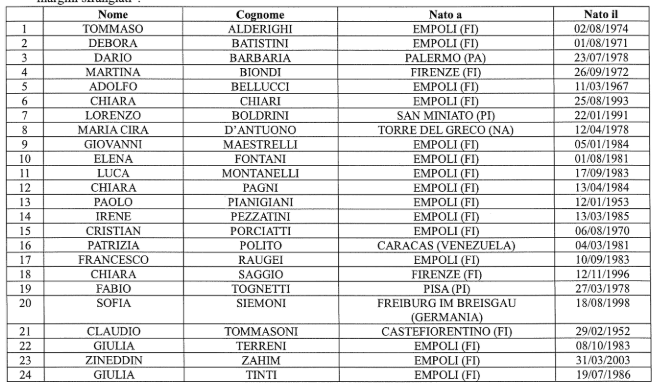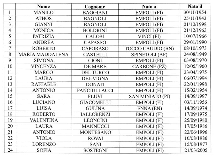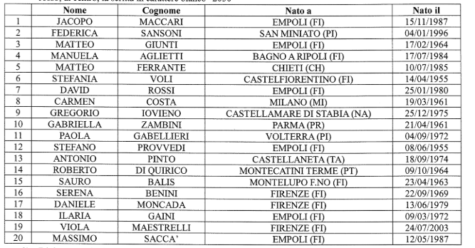 Sono state approvate tutte le liste presentate per le elezioni comunali a Empoli, dopo il termine di sabato 11 maggio. Ecco da verbale tutti i nomi dei candidati presenti, divisi per schieramento
