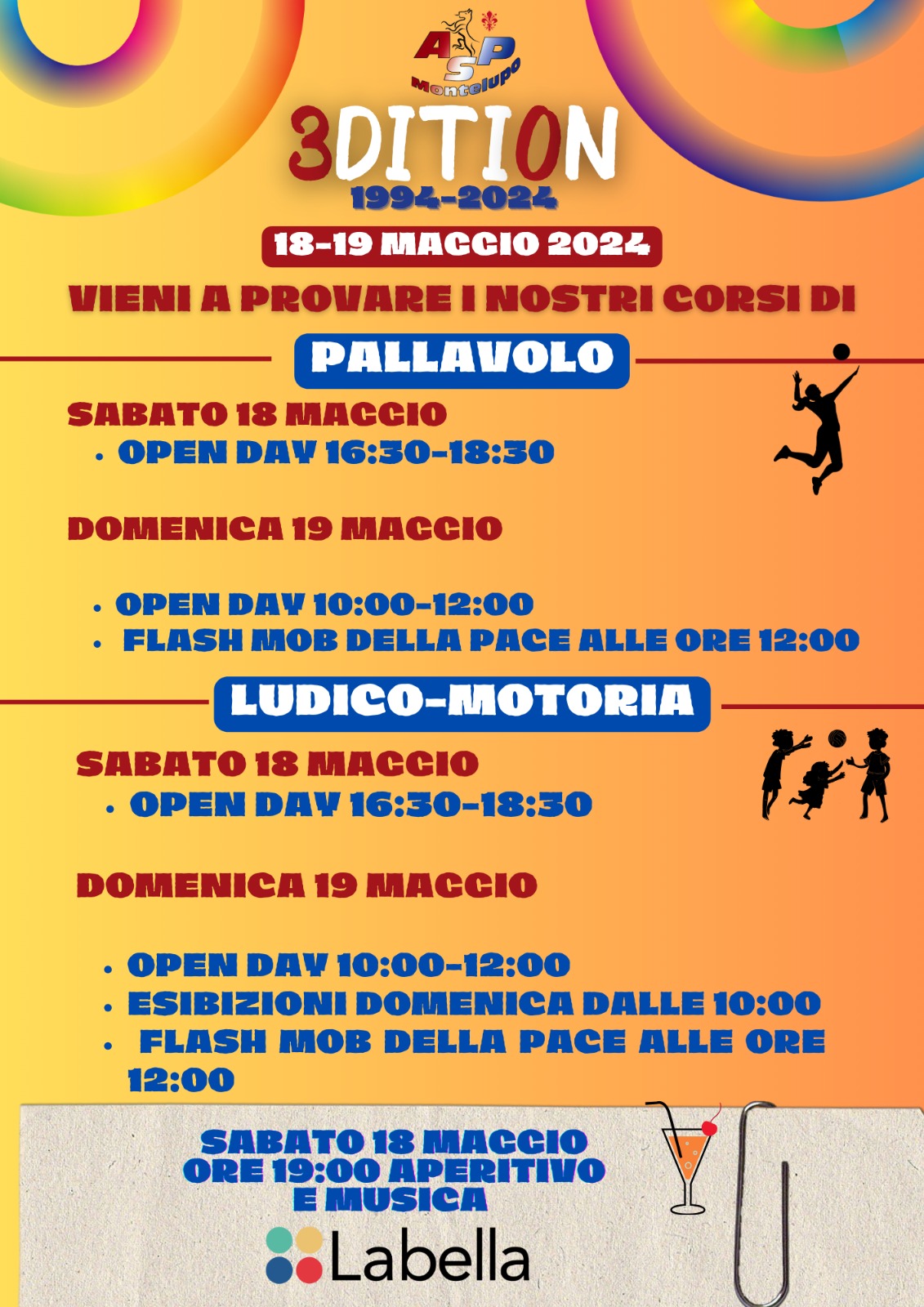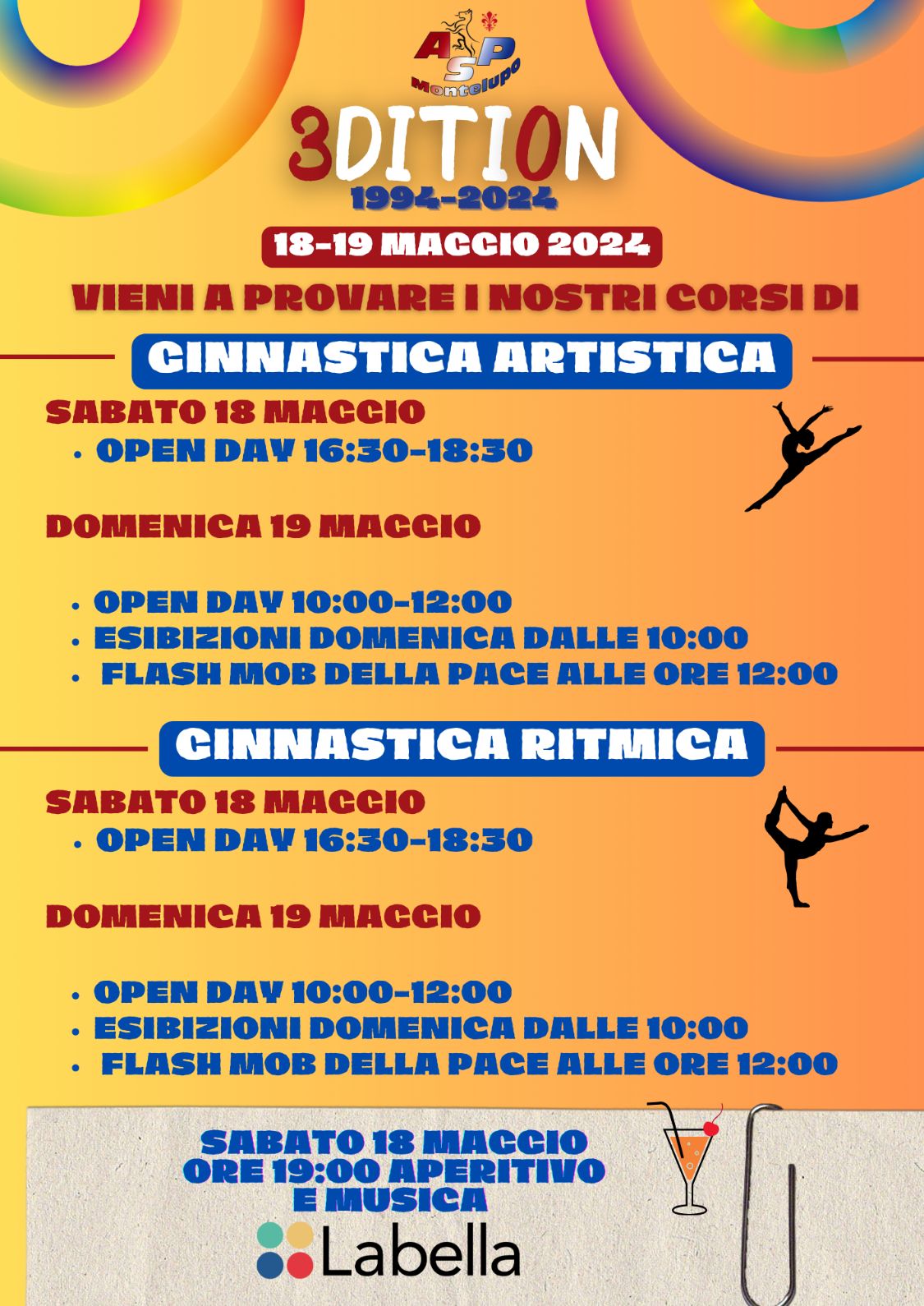 Questo weekend, sabato 18 e domenica 19 maggio, l'Aspd Montelupo organizza una due giorni di porte aperte con varie attività da provare. Il tutto si terrà presso il palazzetto dello sport di Montelupo Fiorentino.