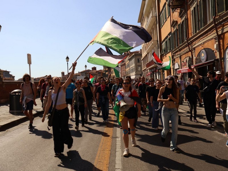 Gli studenti e studentesse dei tre Atenei pisani sono in accampamento con le tende nei giardini di Storia e Filosofia da sei giorni, per richiedere alle Università, alla CRUI e al Ministero di rompere le complicità nel genocidio del popolo palestinese, concretizzate tramite le collaborazioni universitarie con istituti ed enti afferenti ad Israele e con aziende private nel settore dell’industria bellica, che ne supportano lo sforzo militare.