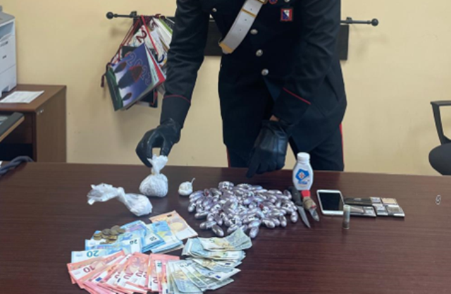 Nel corso della perquisizione dell’immobile, i carabinieri hanno rinvenuto 18 grammi di sostanza stupefacente del tipo cocaina, contenuti in un involucro di cellophane, 880 grammi di hashish, suddivisi in un panetto più altri 73 ovuli del peso di 11 grammi ciascuno, 70 grammi di sostanza da taglio del tipo mannitolo, vario materiale per confezionamento, 4 bilancine di precisione, nonché 685 euro in banconote di vario taglio, verosimilmente provento di attività di spaccio ed infine una cartuccia per fucile da caccia calibro 20.