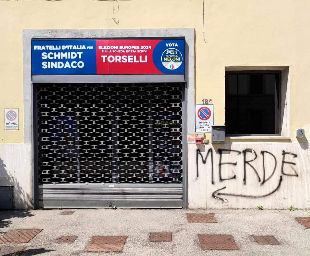 "Questa mattina, i soliti facinorosi dell'estrema sinistra hanno vandalizzato la nostra sede elettorale in via del Pollaiolo, vergando scritte offensive sui muri limitrofi".