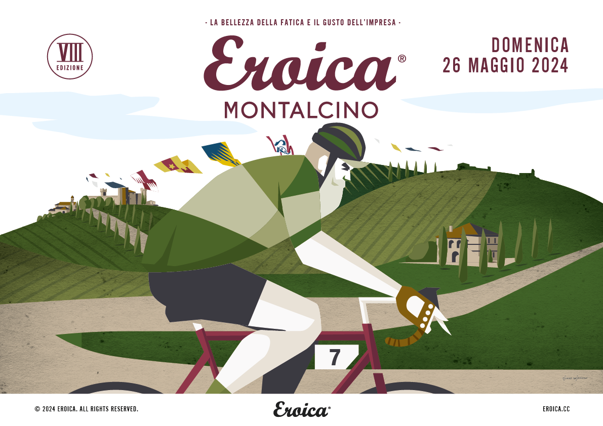 Con Eroica, Montalcino veste da giorni i colori della festa. Tutto il centro storico è già trasformato in un enorme palcoscenico illuminato da lanterne fatte dalle maglie dei ciclisti di un tempo, è investito dalla musica, dai balli, dalle maglie di lana e dalle biciclette eroiche. Molte vetrine sono già caratterizzate Eroica. Nei prossimi giorni in piazza del Popolo sarà installata la barberia Proraso per il concorso “Barba & Baffi”, al Chiostro di Sant’Agostino si potranno registrare le biciclette nel Registro delle Bici Eroiche. Al villaggio si potrà partecipare alla campagna indetta dalla Fondazione Michele Scarponi, al Teatro degli Astrusi si potranno ammirare alcuni modelli rarissimi di biciclette Colnago e si avrà l'opportunità di entrare in contatto con Terra Eroica. Presso lo stand di Generali Italia si potranno seguire delle lezioni con nutrizionisti per la corretta e sana alimentazione. Da quest’anno Eroica Montalcino, tappa del “Giro d’Italia delle Cure Palliative Pediatriche”, rafforza il suo impegno per l’ambiente. Infatti, favorisce la raccolta differenziata, sostiene l’iniziativa “Adotta un chilometro” in partnership con Terre Cablate, propone il dorsale in tessuto riciclato realizzato da Roy Roger's, aderisce alla campagna “UCI Climate Action Charter”. Eroica Montalcino 2024 sarà l’occasione per presentare lo studio tecnico, realizzato per il Ministero dell’Ambiente e della Sicurezza Energetica, dei "Percorsi Ritrovati" che mettono in connessione i Parchi Nazionali e i Parchi Minerari d’Italia, attraverso il recupero delle strade rurali, delle strade bianche e della viabilità dimenticata, mettendo al centro la bicicletta d’epoca, emblema e simbolo di economia circolare. Infine, il MASE sarà presente con un corner in cui saranno installate due biciclette con le quali generare energia e favorire così la sensibilizzazione sui temi legati alla tutela dell'ambiente.