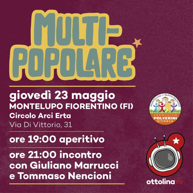 La lista civica "Montelupo è Partecipazione" è lieta di ospitare Giuliano Marrucci e Tommaso Nencioni per presentare l'associazione "Multipopolare" e discutere sul sistema informativo. L'evento è in programma giovedì 23 maggio 2024, al Circolo Arci Erta, di via Di Vittorio, 31.
