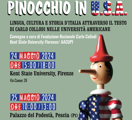 Due giornate di studio dedicate a Pinocchio in U.S.A. Lingua, Cultura e Storia d’Italia attraverso il testo di Carlo Collodi nelle Università Americane, da Firenze a Pescia, terminando poi a Collodi, il 24 e il 25 maggio 2024.