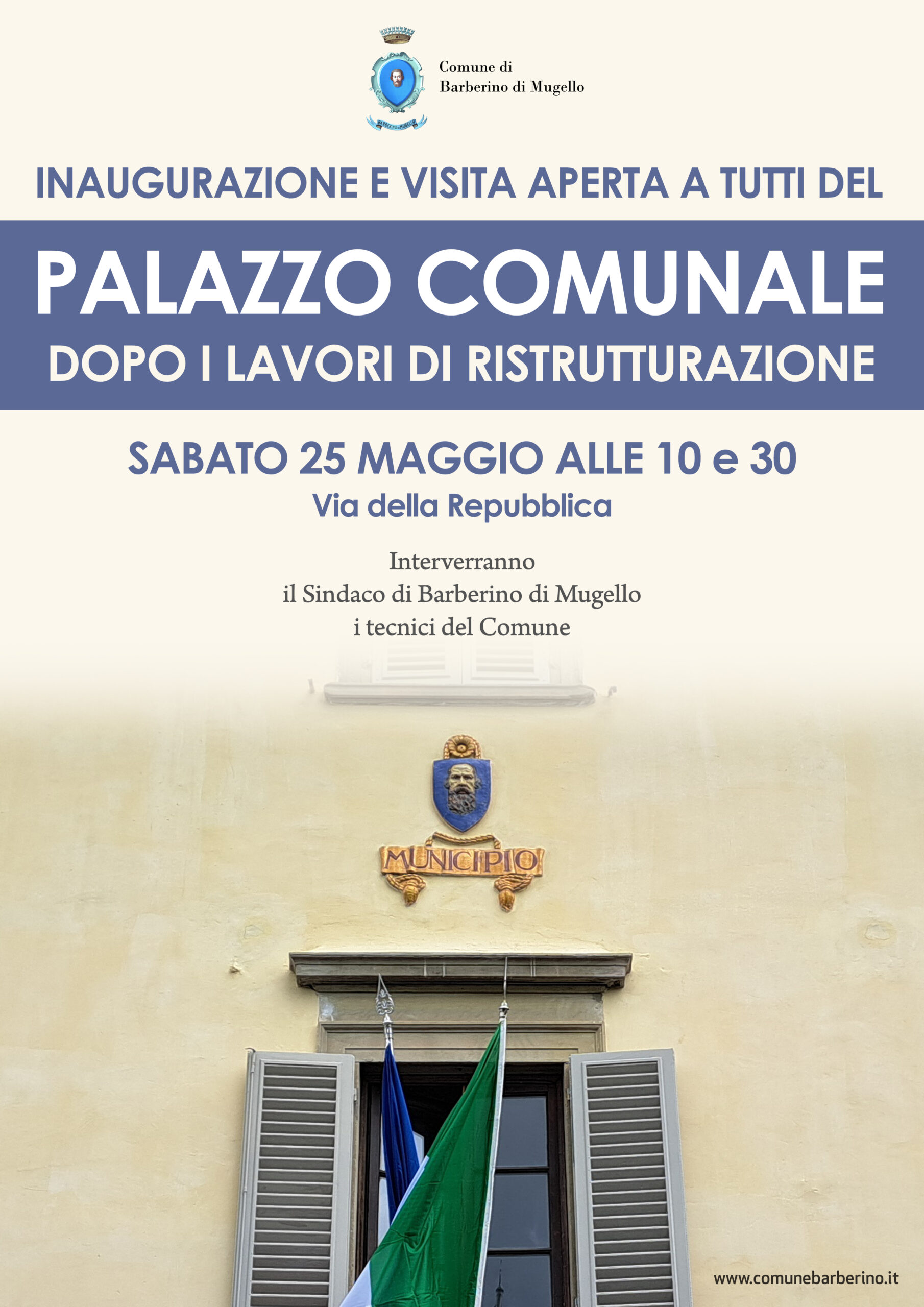 Sabato 25 Maggio alle 10 e 30 si terrà l’inaugurazione del Palazzo Comunale di Barberino, totalmente rinnovato dopo i lavori di ristrutturazione. Il vero e proprio trasloco inizierà nei prossimi giorni e quindi quella di Sabato sarà l’occasione per i cittadini di visitare il Palazzo, ancora sgombero da mobili ed attrezzature degli uffici.