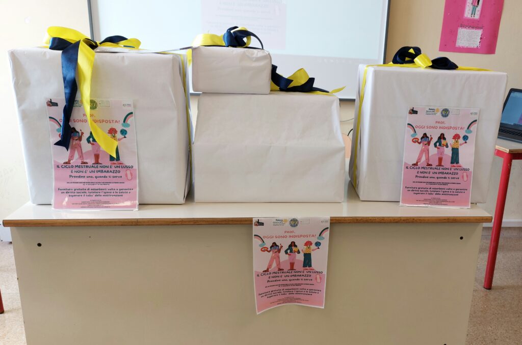 Nella mattina del giorno 20 maggio 2024 presso le due sedi della scuola secondaria dell’Istituto Comprensivo Sacchetti di San Miniato (in via Rondoni a San Miniato e in via Capponi a San Miniato Basso), si è svolta l’iniziativa “Prof., oggi sono indisposta! Il ciclo mestruale non è un lusso e non è un imbarazzo. Prendine uno, quando ti serve”, con la quale sono stati donati al nostro Istituto 2160 assorbenti biodegradabili per ragazze, grazie all'iniziativa di donazione da parte delle associazioni Soroptimist Valdarno Inferiore e Rotary Club Comprensorio del Cuoio, avviata con una raccolta fondi per il service e con il contributo dell’Azienda Speciale Farmacie San Miniato.