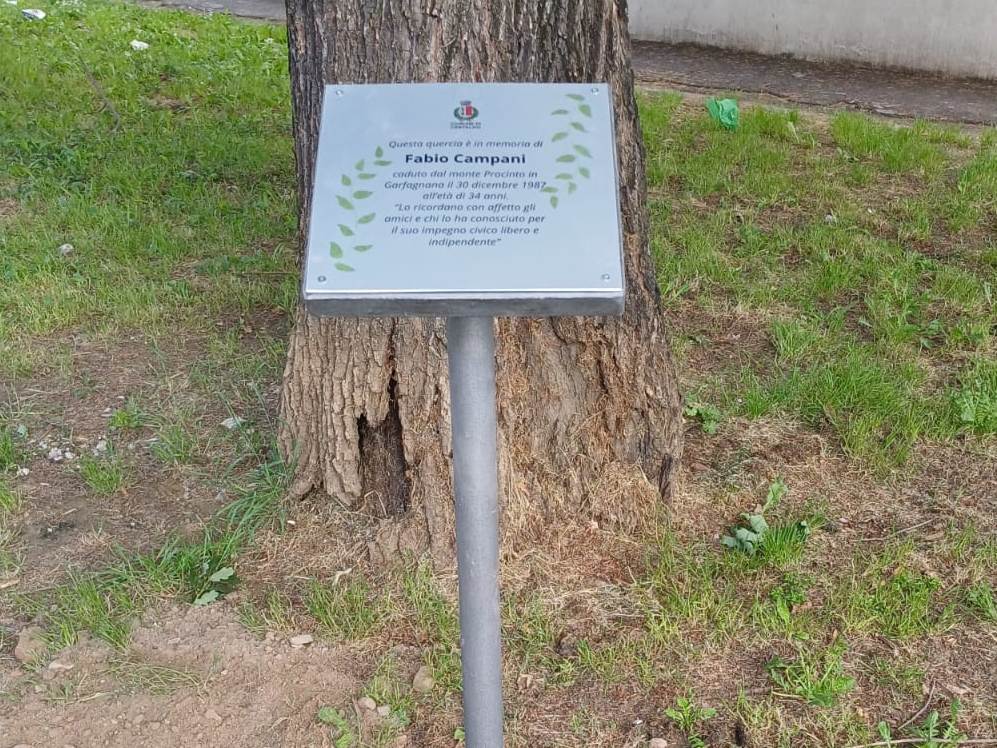 Fino ad oggi, l'importanza simbolica dell'albero è stata tramandata solo a voce da coloro che hanno partecipato alla sua piantumazione o che hanno conosciuto personalmente Fabio Campani. Con l'installazione della targa, si intende rendere permanente il ricordo di una persona che ha lasciato un segno profondo nella comunità. La targa riporta il messaggio "Lo ricordano con affetto gli amici e chi lo ha conosciuto per il suo impegno civico libero e indipendente".