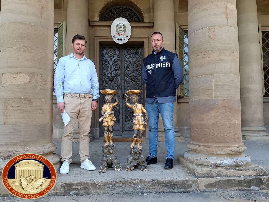 Una coppia di moretti portavaso in legno intagliato e dorato del XVIII sec., trafugati il 26 aprile 1979 in Carmignano (PO) dalla Chiesa di San Michele Arcangelo, sono stati restituiti dal Comandante del Nucleo Carabinieri per la Tutela del Patrimonio Culturale (TPC) di Firenze all’attuale parroco.