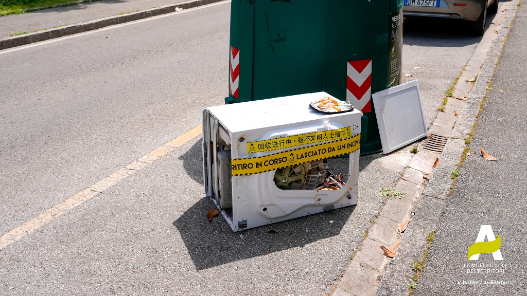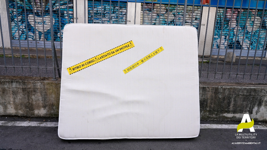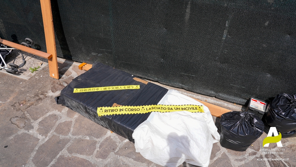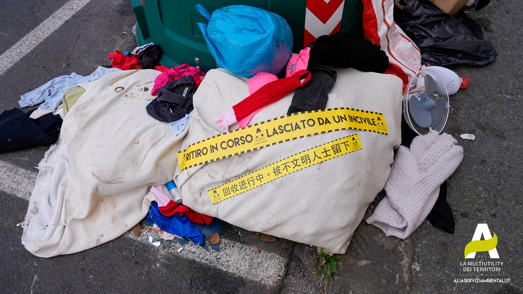 ‘Ritiro in corso. Lasciato da un incivile!’. Con questo avviso, stampato su un appariscente adesivo giallo e nero, apposto sui rifiuti abbandonati arriva anche a Prato, fra le azioni del progetto “Che Prato! Più raccolta differenziata, più decoro”, l’azione di ‘guerrilla marketing’ di Alia Multiutility.
