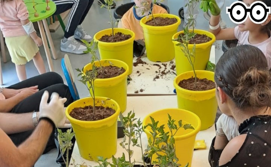 Nei piccoli vasi i bambini si sono adoperati per piantarci gli alberelli di pomodoro, sotto la guida sapiente di Elena e Leonardo e, una volta compiuta l’opera di giardinaggio, qualcuno ha lasciato la pianta a dimorare nella stanza comune, altri l’hanno portata nella propria cameretta di degenza, altri ancora, una volta dimessi, a casa propria.