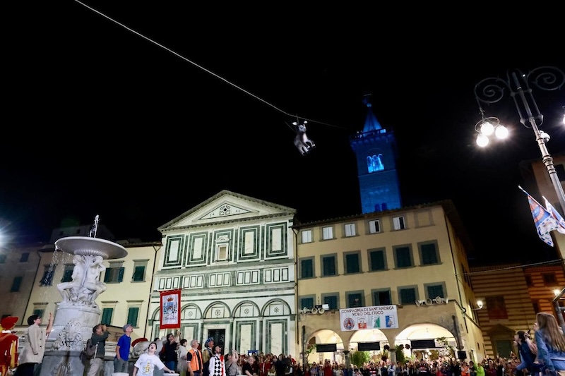 Tante persone hanno partecipato all'iniziativa già fin dal pomeriggio, girando per il centro e perdendosi tra la rievocazione storica della Empoli medioevale. Dalle 21 poi il corteo storico con oltre duecento persone e la benedizione dell'asino, prima che dal campanile di Sant'Andrea non volasse lui, Messer Mi Candido.